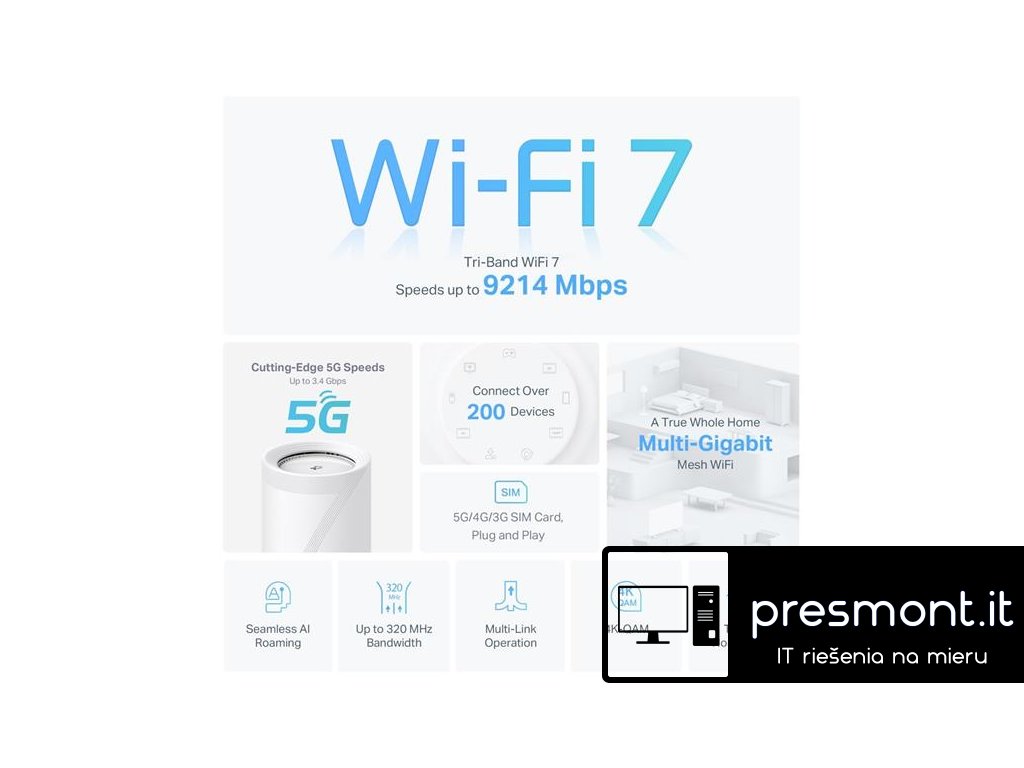 5G BE9300 Whole Home Mesh Wi-Fi 7 Router, Build-In 5G Modem SPEED: 574 Mbps at 2.4 GHz + 2880 Mbps at 5 GHz + 5760 Mbps