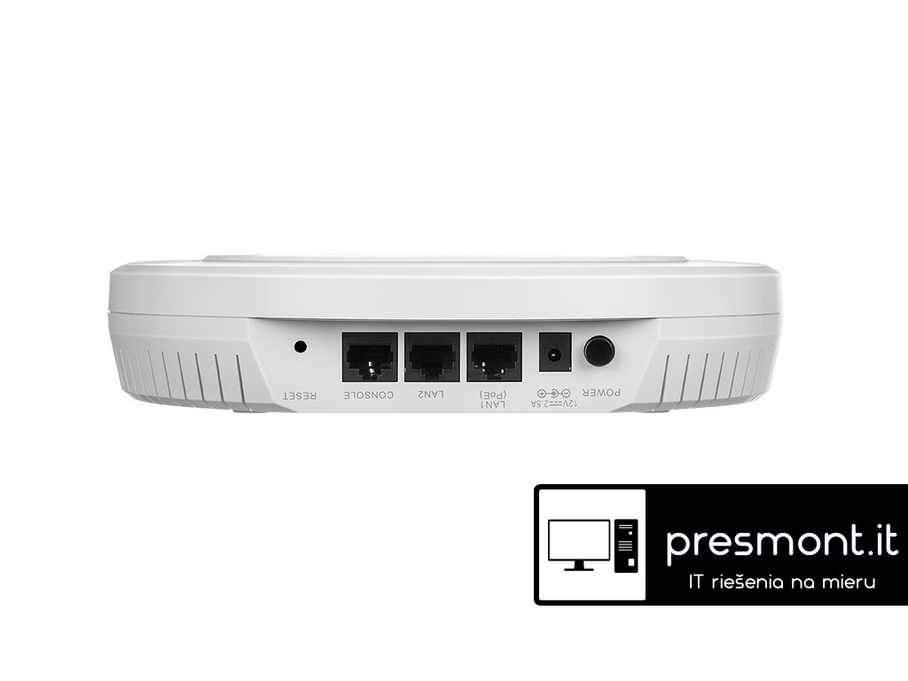 DWL-X8630AP - AX3600 Wi-Fi 6 Dual-Band Unified Access Point FUNKCE - WiFi 6: Technologie nové generace 802.11ax Wi-Fi 6 poskytuje vyšší rychlost, kapacitu a nejnovější zabezpečení WPA3- 4x4 MU-MIMO: Vylepšená účinnost při obsluze více zařízení současně - PoE & flexibilní instalace: Napájejte zařízení přes Ethernet bez nutnosti použití blízkých elektrických zásuvek, s možností montáže na strop nebo na zeď - Centrální správa: Lze použít jako samostatný přístupový bod nebo lze spravovat centrálně pomocí Wi-Fi kontroléru D-Link Wireless Controller (DWC) TECHNICKÉ VLASTNOSTI MIMO: 4 x 4 Bezdrátové rozhraní: IEEE 802.11a/b/g/n/ac/ax (Wi-Fi 6) Rychlost přenosu dat: 2.4 GHz - až 1147 Mbps, 5 GHz - až 2402 Mbps Anténa: interní všesměrové antény, 2,4 GHz: 3dBi, 5 GHz: 4 dBi Rozhraní: 1x 10/100/1000BASE-T LAN port, 1 x 10/100/1000/2500 BASE-T LAN port Console Port: RJ-45 Ověření: filtrování MAC adres SSID zabezpečení: až 32 SSID, 802.1Q VLAN FYZICKÉ VLASTNOSTI Rozměry: 220 x 47 mm Váha: 0,868 kg Certifikace: CE, FCC, IC, RCM, NCC, BSMI, UL2043 Max. spotřeba energie: 19,98W Teplota: 0 až 40°C PoE: IEEE 802.3at MTBF: 485 222 hodin Napájecí zdroj: podpora 802.3at PoE PD na LAN portu, externí adaptér 12VDC 2,5A