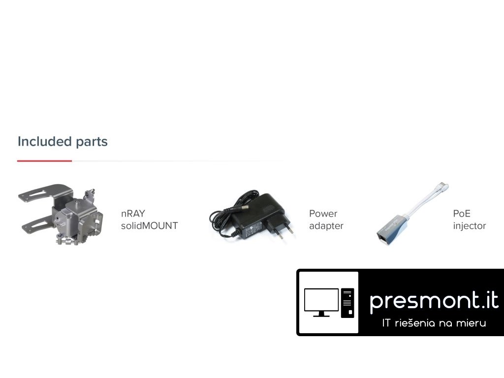 Popis produktu nRAYG-60adpair je další revoluční novinka v MikroTik sortimentu, která osloví každého, kdo vytváří spoje na středně dlouhé vzdálenosti. Jedná se totiž o ptp řešení v pásmu 60GHz pracující se standardem 802.11ad, který v reálném provozu umožňuje propustnost až 1000Mbps Full Duplex na vzdálenost až 1500m. MikroTik tvrdí, že má tato jedotka stejný zisk jako jednotky LHG (RBLHGG-60ad) ale s menší velikostí a radomem jako bonus, který uvítají všichni ISP za nepříznivého počasí. RouterBoard je jako vždy vybaven velmi oblíbeným operačním systémem RouterOS s L3 licencí. Pro upgrade jednotky na AP je potřeba dokoupit pouze L4 licenci. Výbava MikroTik nRAYG-60adpair disponuje 1x Gigabitovým Ethernetem s podporou PoE. Jednotku lze napájet jak přes aktivní (802.3af/at), tak i pasivní PoE s rozsahem 12 až 57V. Maximální spotřeba zařízení je pouhých 6W! Obsah balení (2x) Zařízení s L3 licencí (2x) Napájecí adaptér 24V/0.38A (2x) Gigabitový PoE injektor (2x) kovový precizní držák s jemným lazením Technické parametry Bezdrátové vlastnosti Bezdrátové frekvence: 60 GHz WiFi standardy: 802.11ad Přenosová rychlost - 60GHz [Mb/s]: 1000, Full Duplex Typ antény: Vestavěná Fyzické charakteristiky Provedení: Venkovní Provozní teplota [°C]: -40 až 70 Hloubka [mm]: 166 Šířka [mm]: 261 Výška [mm]: 261 Hardware RAM [MB]: 256 CPU: 88F3720 Frekvence CPU [MHz]: 1000 Počet CPU jader: 2 Konektory a rozhraní Rychlosti LAN: (1) 10/100/1000Mbps Gigabit LAN: Ano Napájení Napájení přes PoE: 802.3af, 802.3at, 12 .. 57V DC Typ napájení: PoE Typy PoE: PoE-In (pouze) Max. spotřeba energie [W]: 6 Software Operační systém: RouterOS - L3 Výchozí IP adresa: 192.168.88.1 Výchozí jméno a heslo: admin / (přednastavené heslo, viz víčko)Dodatočné parametre