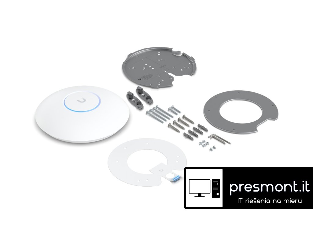 UniFi U7 Pro Max - přístupový bod stropní WiFi 7 AP s podporou 6GHz pro firemní bezdrátovou síť v náročných prostředích * WiFi 7 s podporou 6GHz * MIMO * 8 streamů (datových proudů) * 802.1Q * pokrytí až 160m2 * více než 500 připojených zařízení * napájeno pomocí PoE+ * omezení rychlosti na uživatele * správa pomocí UniFi Network (verze 8.2.93 a novější) * spektrální analýza v reálném čase pro lepší výběr kanálů Technické parametry Bezdrátové frekvence: 2,4 + 5 + 6GHz (triple band) WiFi standardy: 802.11a/b/g/n/ac/ax/be Propustnost (2,4, 5, 6GHz): 688Mb/s, 8648Mb/s, 5765Mb/s MIMO (2,4, 5, 6GHz): 2x2, 4x4, 2x2 Vysílací výkon (2,4, 5, 6GHz): 23dBm, 29dBm, 23dBm Zisk antény (2,4, 5, 6GHz): 4dBi, 6dBi, 5,9dBi Typ antény: interní Šifrování: WPA-PSK, WPA-Enterprise (WPA/WPA2/WPA3/PPSK) Síťová rozhraní: 1x port 2,5GbE PoE+ RJ45 Rozhraní pro správu: Ethernet Metoda napájení: PoE+ Napájení přes PoE: 44-57V DC Max. spotřeba energie: 25W Provozní teplota: -30 až 60 °C Použití: vnitřní Rozměry: 206x206x46mm Hmotnost: 680g Obsah balení: * U7 Pro Max * kit pro uchycení na strop/stěnu * sada šroubků a hmoždinekDodatočné parametre