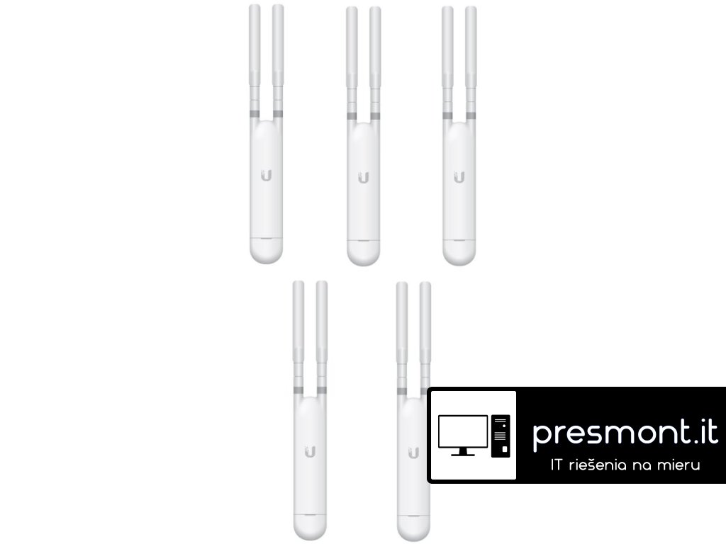 Ubiquiti UniFi AP AC Mesh, 5 pack Popis produktu UAP-AC-M je bezdrátový access point 2x2 MIMO s modulační rychlostí až 300Mb/s pro pásmo 2,4GHz (802.11b/g/n) a až 866Mb/s pro pásmo 5 GHz (802.11a/n/ac). Vzhledem k minimálním rozměrům je možné jednotku diskrétně včlenit do jakéhokoliv prostředí. Díky provedení je možné access point instalovat jak uvnitř budov tak ve venkovním prostředí. Kromě klasického napájení 24V passive Gbit POE jistě oceníte také možnost napájení přes 802.3af POE. Jednotku můžete používat s přibalenými anténami se ziskem 3dBi (2,4GHz)/4dBi (5Ghz) nebo připojit k sektorovým anténám Ubiquiti. UAP-AC-M je navržené tak, aby se snadno montovalo na zeď, stožár a díky redukci, která je součástí balení, i na antény Ubiquiti s Rocket-kitem. Technické parametry Bezdrátové vlastnosti Bezdrátové frekvence [GHz]: 2,4 + 5 (dual band) Přenosová rychlost WiFi - 2,4GHz [Mb/s]: 300 Přenosová rychlost WiFi - 5GHz [Mb/s]: 866 WiFi standardy: 802.11ac, 802.11n, 802.11a, 802.11b/g Vysílací výkon 2,4GHz [dBm]: 20 Vysílací výkon 5GHz [dBm]: 20 Šifrování: WEP, WPA-PSK, WPA-Enterprise (WPA/WPA2, TKIP/AES) Typ antény: Odnímatelná Počet odnímatelných antén: 2 Roaming: Ano Zisk antény [dBi]: 4 Fyzické charakteristiky Použití: Venkovní Tlačítka: Reset Provozní teplota [°C]: -30 až 70 Hmotnost [g]: 152 Hloubka [mm]: 34 Šířka [mm]: 46 Výška [mm]: 353 Konektory a rozhraní Počet LAN portů: 1 Rychlosti LAN: (1) 10/100/1000Mbps Gigabit LAN: Ano Napájení Max. spotřeba energie [W]: 8,5 Napájení přes PoE: 802.3af, 24V DC, 44 .. 57V DC Typy PoE: Vstupní Software Podpora IPv6: Transparentní (režim bridge) Operační mód: Access Point Výchozí IP adresa: 192.168.1.20, Dynamická z DHCP Výchozí jméno a heslo: Ubiquiti/UbiquitiDodatočné parametre
