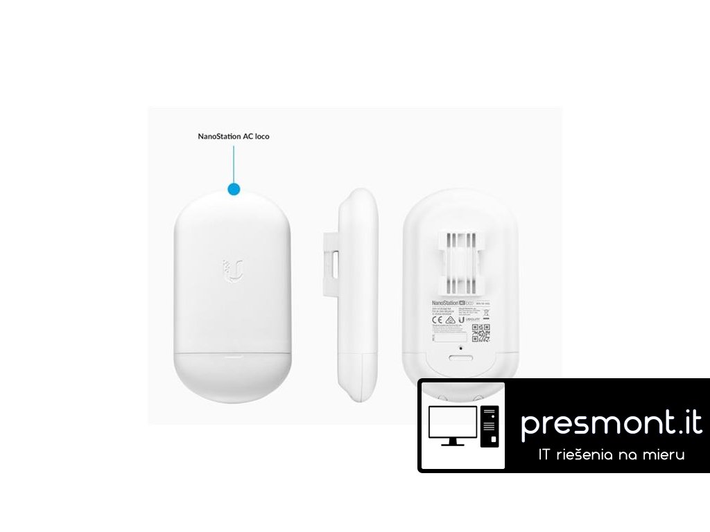 popis produktuNanoStation 5AC Loco je veľmi malá klientská 13dBi stanice radu AirMax ac, ktorá doshauje veľmi vysokých prenosových rýchlostí a stabilného spojenia aj v zarušenom prostredí. Jednotka je kompatibilná iba s ďalšími produktmi AirMax ac a je určená pre vonkajšie použitie. Vďaka možnému nastavenia šírky kanála 10/20/30/40/50/60 a 80MHz možné pri modulácii 256QAM dosiahnuť reálne priepustnosti až 450Mbps +