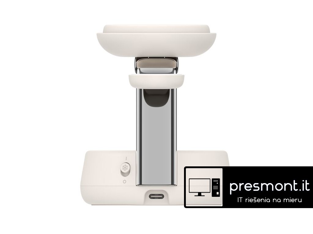 BELKIN ,UltraCharge Pro bezdrátová magnetická nabíjecí stanice 3 v 1 s Qi2 25W *Bezdrátové nabíjení rychlostí kabelu *Poskytuje až 25 W pro bezdrátové nabíjení zařízení 5krát rychleji *Technologie aktivního chlazení ChillBoost: reguluje teplotu (max. snížení o 7 stupňů Celsia) pro optimalizaci vysokorychlostního bezdrátového nabíjení, volitelný tichý interní inteligentní ventilátor s vypínačem , *Nabije iPhone z 0 na 50 % za 25 minut ,a Apple Watch Series 10 z 0 na 80 % za 30 minut *Bezdrátově nabíjí AirPods (až 5 W) *Vysoce kvalitní materiály a chromová povrchová úprava v kombinaci s měkkým silikonovým materiálem pro stylový design *Závažová základna pro snadné magnetické umístění telefonu jednou rukou *Nastavitelné pro používání zařízení v režimu na šířku nebo na výšku *Certifikace Qi2 25W *Kompatibilní s mnoha různými kryty na telefon *Vyrobeno z 85 % recyklovaných materiálů Rozměry [mm]: 116,96 x 86,4 x 102,68 , Délka kabelu: ,1,5m ,opletený kabel USB-C/USB-C Výkon: 25 W Napájecí adaptér: 45W USB-C napájecí adaptér Obsah balení: *UltraCharge Pro bezdrátová magnetická nabíjecí stanice 3 v 1 s Qi2 25W *1,5m kabel USB-C/USB-C *45W USB-C napájecí adaptér Záruka: 2 rokyDodatočné parametre