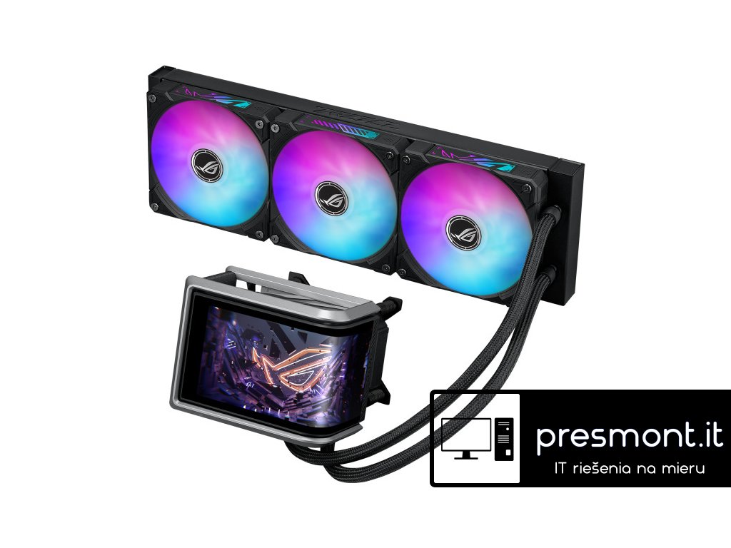 ASUS ROG RYUO IV 360 ARGB Vodní blok: Rozměry vodního bloku: 133 × 105 × 137 mm Materiál bloku (CPU deska): měď Radiator: Rozměry radiátoru:399,5 × 120 × 30 mm Materiál radiátoru: hliník Hadice: opletená gumová hadice Délka hadic: 400 mm Ventilátor: ROG RYUO IV MF-12C ARGB Velikost: 3× pozice pro ventilátor (120 mm) Rozměry:120 × 120 × 25 mm Otáčky: 500–2000 ± 10 % RPM Statický tlak: 3,56 mmH2O Průtok vzduchu: 56,66 CFM Hlučnost: 30,7 dB(A) Režim řízení: PWM / DC Speciální vlastnosti: 6.67'' AMOLED AURA Sync Support Kompatibilita: AMD: AM5,AM4 Intel: LGA 1851, 1700, 1200, 115x Odkaz na oficiální web: https://rog.asus.com/cooling/cpu-liquid-coolers/rog-ryuo/rog-ryuo-iv-360-argb/Dodatočné parametre