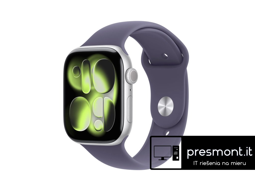 Apple Watch Series 11 Sport Band stříbrné/mlžně fialové M/L *pro zápěstí s obvodem 140–245 mm *korunka Digital Crown s haptickou odezvou *reproduktor/mikrofon Operační systém: watchOS Displej: stále zapnutý LTPO3 OLED Retina, 416×496 pixelů, 1220 mm2, 326 ppi, 1/2000 nitů Čip: *S10 s 64bitovým dvoujádrovým procesorem *4jádrový Neural Engine *64 GB Připojení: *GPS L1, GLONASS, Galileo, QZSS a BeiDou *Wi-Fi 4 (802.11n) *podpora 2,4GHz a 5GHz Wi-Fi sítí *Bluetooth 5.3 *NFC: Apple Pay, GymKit Snímače: *elektrický snímač srdeční činnosti *třetí generace optického snímače srdeční činnosti *saturace kyslíkem *teploty *hloubkoměr do 6 m *teploty vody *kompas *stále aktivní výškoměr *akcelerometr snímající vysoké přetížení *gyroskop s vysokým dynamickým rozsahem *okolního osvětlení Voděodolnost: do 50 m (pro plavání) Odolnost proti prachu: IP6X Funkce: *aplikace Saturace kyslíkem *aplikace EKG *aplikace Sledování cyklu se zpětným odhadem doby ovulace *aplikace Srdeční tep *oznámení o vysoké a nízké tepové frekvenci *oznámení o nepravidelném srdečním rytmu *aplikace Léky *aplikace Všímavost se zaznamenáváním stavu mysli *aplikace Hluk *aplikace Spánek se sledováním fází spánku *spánkové skóre *upozorňování na spánkovou apnoi *oznámení o hypertenzi *tíseň SOS *mezinárodní tísňové volání *detekce autonehody *detekce pádu *monitorování hluku Kompatibilita: iPhone 11 a novější, včetně iPhonu SE (2. generace a novější) s iOS 26 nebo novějším Napájení: vestavěná dobíjecí lithium-iontová, podpora rychlonabíjení, až 24 hodin běžného používání Materiál pouzdra: hliník Rozměry: 46x39x9,7mm Hmotnost: 37,8g Obsah balení: *Apple Watch Series 11 *řemínek *magnetická rychlonabíječka Apple Watch s USB-C kabelem (1m)Dodatočné parametre