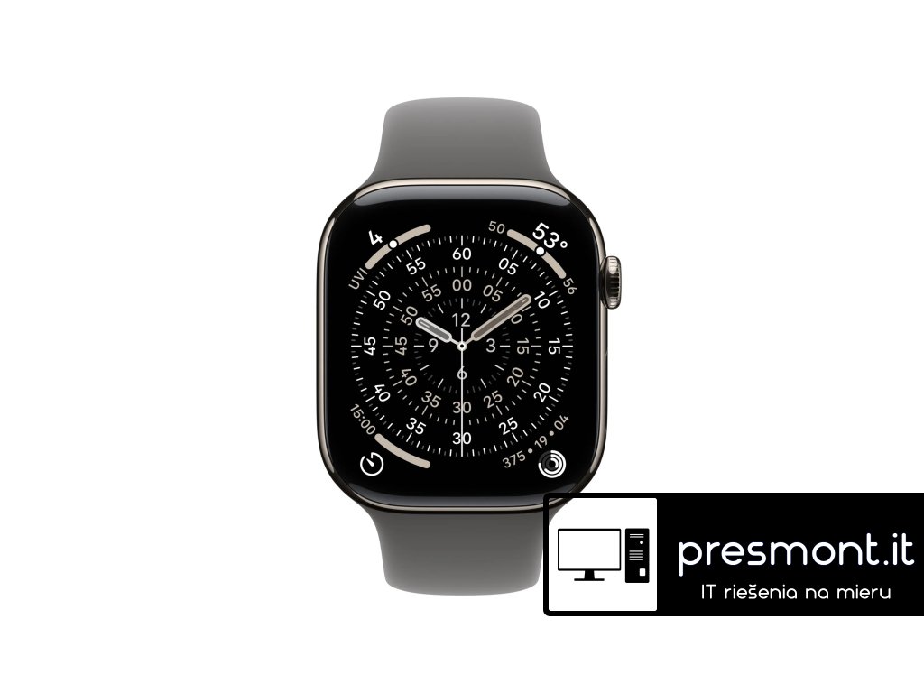 Apple Watch Series 11 Cellular Sport Band přírodní/kamenně šedé M/L * pro zápěstí s obvodem 130–200 mm * korunka Digital Crown s haptickou odezvou * reproduktor/mikrofon Operační systém: watchOS Displej: stále zapnutý LTPO3 OLED Retina, 374×446 pixelů, 989mm2, 326 ppi, 1/2000 nitů Čip: * S10 s 64bitovým dvoujádrovým procesorem * 4jádrový Neural Engine * 64 GB Připojení: * GPS L1, GLONASS, Galileo, QZSS a BeiDou * LTE a UMTS * Wi-Fi 4 (802.11n) * podpora 2,4GHz a 5GHz Wi-Fi sítí * Bluetooth 5.3 * NFC: Apple Pay, GymKit Snímače: * elektrický snímač srdeční činnosti * třetí generace optického snímače srdeční činnosti * saturace kyslíkem * teploty * hloubkoměr do 6 m * teploty vody * kompas * stále aktivní výškoměr * akcelerometr snímající vysoké přetížení * gyroskop s vysokým dynamickým rozsahem * okolního osvětlení Voděodolnost: do 50 m (pro plavání) Odolnost proti prachu: IP6X Funkce: * aplikace Saturace kyslíkem * aplikace EKG * aplikace Sledování cyklu se zpětným odhadem doby ovulace * aplikace Srdeční tep * oznámení o vysoké a nízké tepové frekvenci * oznámení o nepravidelném srdečním rytmu * aplikace Léky * aplikace Všímavost se zaznamenáváním stavu mysli * aplikace Hluk * aplikace Spánek se sledováním fází spánku * spánkové skóre * upozorňování na spánkovou apnoi * oznámení o hypertenzi * tíseň SOS * mezinárodní tísňové volání * detekce autonehody * detekce pádu * monitorování hluku Kompatibilita: iPhone 11 a novější, včetně iPhonu SE (2. generace a novější) s iOS 26 nebo novějším Napájení: vestavěná dobíjecí lithium-iontová, podpora rychlonabíjení, až 24 hodin běžného používání Materiál pouzdra: titan Rozměry: 42x36x9,7mm Hmotnost: 34,6g Obsah balení: * Apple Watch Series 11 * řemínek * magnetická rychlonabíječka Apple Watch s USB-C kabelem (1m)Dodatočné parametre