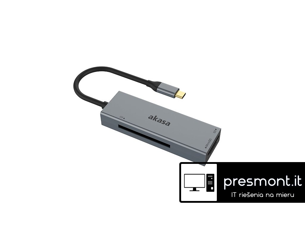 Duální čtečka karet USB 3.2 typu C. Rozšířená konektivita pro běžné paměťové karty včetně karet SDHC / SDXC a UHS-II a CF v kompaktní a špičkové čtečce USB Type-C. Rozhraní: *USB 3.2 Typ C Podpora karet: *Secure Digital (SD, SDXC, SDHC) *Micro SD (micro SD, micro SDXC, micro SDHC) *Compact Flash (CF) Rychlost přenosu dat: *5 Gb/s (USB 3.2 Gen 1 / USB 3.0) *480 Mb/s (USB 2.0) Podpora OS: *MacOS *Windows XP/7/8/10 *Chrome OS Rozměry: *100.5 x 33.1 x 17.2mm Stránky výrobce: https://www.akasa.co.uk/search.php?seed=AK-CR-09BKDodatočné parametre