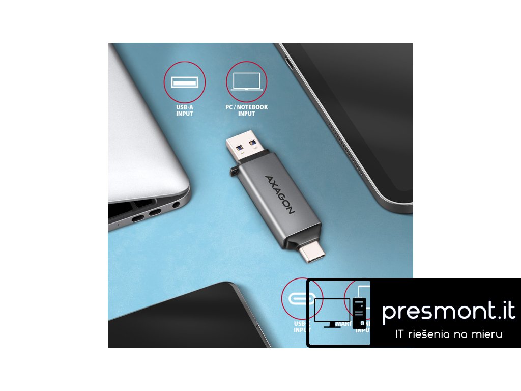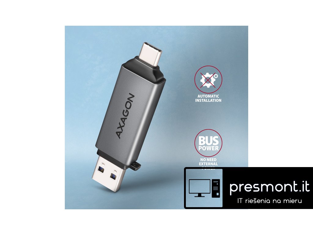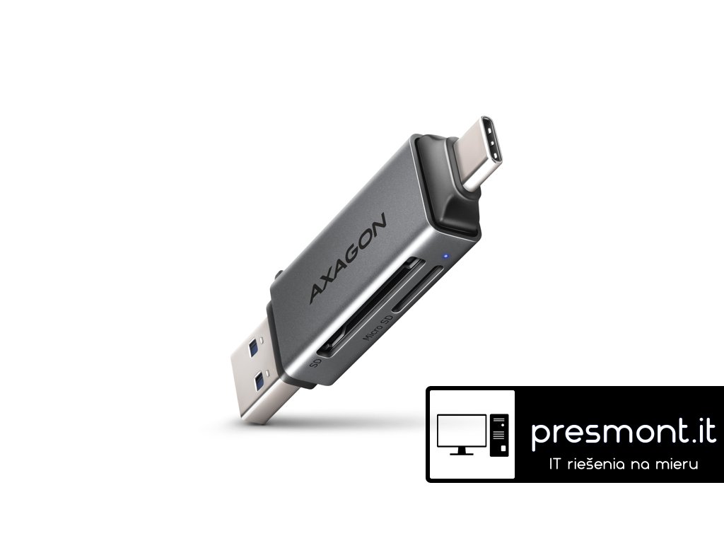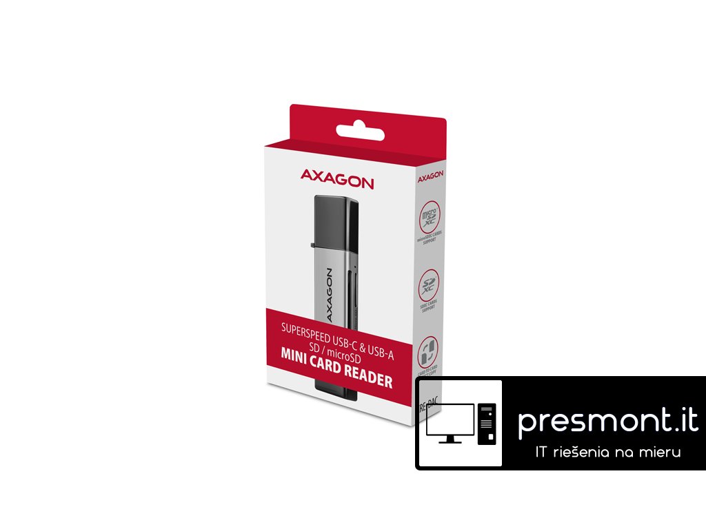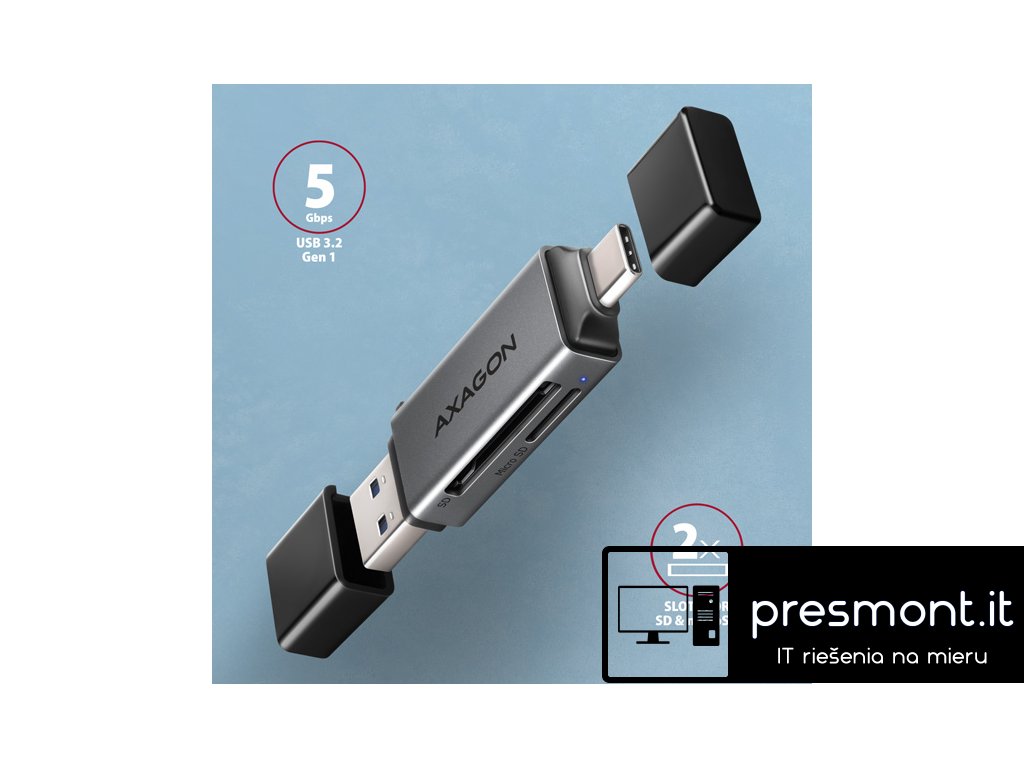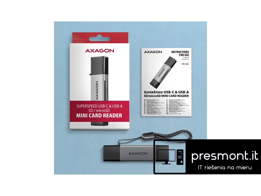 AXAGON CRE-DAC, USB-C + USB-A, 5 Gbps - MINI čítačka kariet, 2-slot & lun SD/microSD, podpora UHS-I