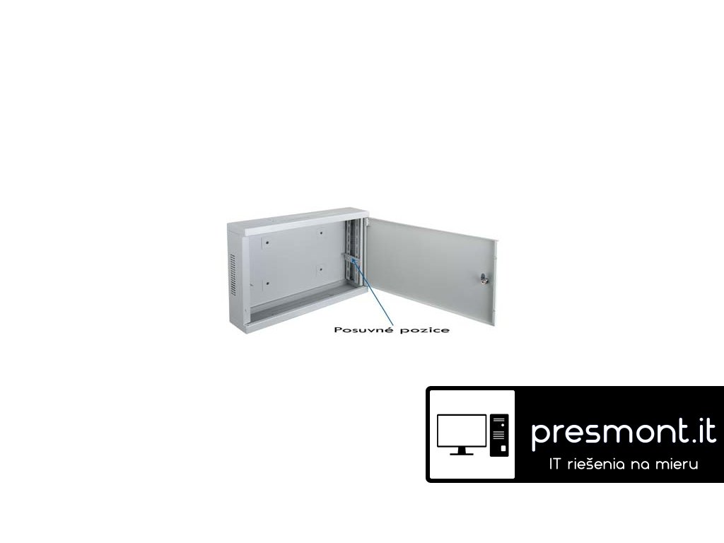 DATACOM 19'' rozvaděč 3U 540/400/180 mm (plech) WALL3 Nástěnná rozvaděčová datová skříň 3U je vyráběna rozměrové variantě o vnějších rozměrech: výška *400 mm šířka *540 mm hloubka *180 mm Tato datová skříň je určena jako rozvaděč pro instalaci prvků strukturovaných kabeláží a prvků telekomunikačních rozvodů. Vlastnosti: * vlastní odvětrávací otvory pos stranách rozvaděče. * nastavitelné pozice vertikálních lišt * z čelní strany je rozvaděč osazen plechovými dveřmi se dvěma panty * zámek na klíč s jednobodovým zamykáním * v zadní části jsou předchystány otvory pro uchycení na zeď * horní a spodní průchody pro kabeláž * barevné provedení: šedáDodatočné parametre