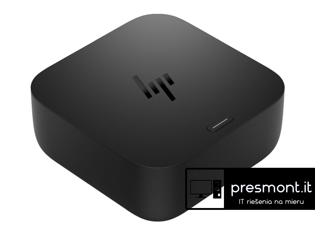 HP USB-C 100W G6 Dockovací stanice Parametry *Délka kabelu: 1m *Software Included: HP Quick Connect, myHP *Počet podporovaných externích displejů: 3 externí displeje, 1 PC displej / 4 externí displeje *Maximální podporovaná rezoluce: 8K *Rozměry (VxŠxH): 121,2 x 121,2 x 50,5 mm *Hmotnost: 0,65-0,8kg Přední strana *1x USB Type-C 3.2 Gen 2 (10 Gbps) port with data and power out (15W) *RGB LED bar Pravá strana *1x USB Type-A 3.2 Gen 2 (10 Gbps) port with charging *1x USB Type-C 3.2 Gen 2 (10 Gbps) port with data and power out (15W) *1x Nano security lock slot Zadní strana *2x USB Type-A 3.2 Gen 1 (5 Gbps) ports with charging *2x DisplayPort 1.4 *1x HDMI 2.1 *1x Ethernet port (2.5 Gbps) Součást balení: *HP USB-C 100W G6 Dock *120W power adapter *product notice *warranty cardDodatočné parametre