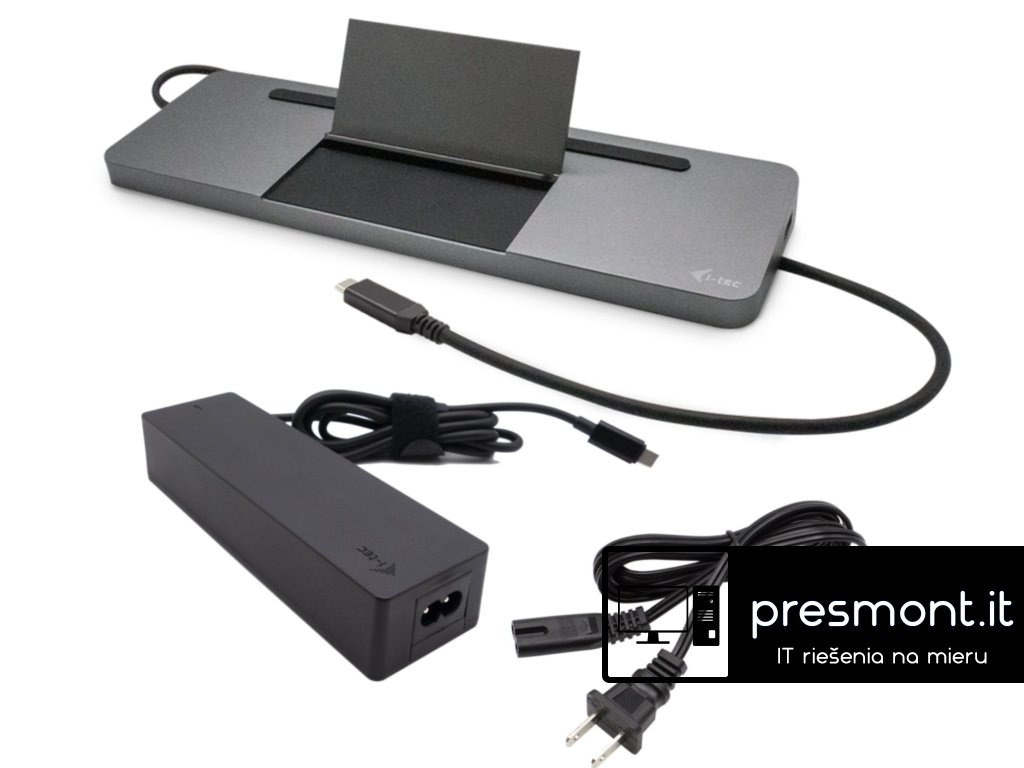 Kompatibilní s notebooky a tablety s rozhraním USB-C a Thunderbolt (musí podporovat režim DisplayPort Alt). • 1x DisplayPort, 1x HDMI a 1x VGA s podporou až tří externích monitorů nebo jednoho monitoru 4K/30Hz. macOS podporuje pouze jeden externí monitor. • Ergonomický design s hliníkovým krytem, dokovací stanice je vybavena integrovaným 60cm kabelem USB-C, takže je • • vhodná pro použití se všemi notebooky a tablety s displeji do 15'' včetně. • 4x USB porty včetně 2x USB-A 3.0 a 2x USB-A 2.0, plus sloty pro SD a mSD karty pro snadné připojení USB zařízení a periferií. • Až 85W Power Delivery pro kompatibilní notebooky a tablety s rozhraním USB-C a Thunderbolt (musí podporovat USB-C Power Delivery). • GLAN Ethernet podporuje síťové rychlosti 10/100/1000 Mb/s, což poskytuje robustní a vysokorychlostní připojení k internetu. • Kombinovaný 3,5mm audio vstup/výstup pro snadné připojení sluchátek nebo reproduktorů. Poznámka: 100W napájecí zdroj je součástí dodávky. Dokovací stanici lze používat také s napájecím zdrojem USB-C dodávaným s notebookem, takže je k dispozici jako samostatná položka, P/N C31FLATDOCKPDPRO. Tento produkt je produktovou sadou dokovací stanice a univerzálního nabíjecího adaptéru. Pořízením této sady získáte kompletní řešení, které vám umožní jak snadné připojení vašeho oblíbeného příslušenství, včetně LAN sítě a externích monitorů, tak i jednoduše a pohodlně vaše zařízení nabíjet (a to včetně vašeho notebooku či tabletu). DOKOVACÍ STANICE Připojte ke svému notebooku, tabletu, PC nebo smartphonu s novým USB-C nebo Thunderbolt 3 rozhraním své oblíbené příslušenství. Použitím této dokovací stanice získáte přístup k napájení a k výstupu až pro tři externí monitory (platí pro systémy s Windows). Dokovací stanici připojíte jediným kabelem (60 cm) do USB-C nebo Thunderbolt 3 portu počítače a můžete ji začít okamžitě využívat. Instalace ovladačů je automatická ze systému. Dokovací stanici jsme navrhnuli tak, aby se dala použít i jako ergonomický podstavec po váš notebook či tablet. Poznámka: operační systém macOS nepodporuje technologii Multi Stream Transport (2 a více monitorů v rozšířeném režimu). Tuto funkci v macOS nepodporuje žádná dokovací stanice využívající USB-C DisplayPort Alt Mode. UNIVERZÁLNÍ NABÍJECÍ ADAPTÉR Tento univerzální USB-C napájecí adaptér s výkonem až 112 W je výbornou volbou pro napájení jakéhokoli notebooku či jiného zařízení s USB-C konektorem, které podporuje USB-C Power Delivery s maximálním požadovaným příkonem 100 W. Napětí se nastavuje automaticky podle USB Power Delivery specifikace v jednotlivých profilech v těchto krocích: 5V / 9V / 12V / 15V / 19V / 20V s max. odběrem 5A. Napájecí adaptér je lehký a snadno přenositelný, má inteligentní ochranu proti proudovému přetížení, přepětí, zkratu a přehřátí. Specifikace DOKOVACÍ STANICE • 1x integrovaný USB-C kabel pro připojení k zařízení (60 cm) • Technologie dokovací stanice: USB-C (MST) • Power Delivery: 85W • Video porty:,1x Display Port, 1x HDMI, 1x VGA Rozlišení: Hostitelské zařízení s podporou DisplayPort 1.2: • 1 monitor – 1x HDMI nebo DP › až 4K/30Hz • 1 monitor – 1x HDMI nebo DP› až 1080p/120Hz • 1 monitor – 1x VGA › až 1080p/60Hz • 2 monitory – 1x DP + 1x HDMI › až 2x 1080p/60Hz* • 2 monitory – 1x DP + 1x VGA › až 2x 1080p/60Hz* • 2 monitory – 1x VGA + 1x HDMI › až 2x 1080p/60Hz* • 3 monitory – 1x HDMI + 1x DP + 1x VGA › až 1x 1080p/60Hz + až 2x 720p/60Hz* • 1x USB-C port PD (pouze power delivery) • 2x USB 3.0 port • 2x USB 2.0 port • 1x Ethernet GLAN RJ-45 port • 1x SD slot • 1x microSD slot • 1x 3,5mm Audio kombo port • Klonování MAC adresy: ano (za použití software i-tec Docker Pro) • WOL: S1, S2, S3 • OS: Windows 10/11, macOS*, iPadOS**, Android**, Chrome OS a Linux s nejnovějšími aktualizacemi • Rozměry produktu: 269 x 84 x 23 mm • Hmotnost produktu: 324 g • Rozměry balení: 316 x 130 x 30 mm 1/ Operační systém macOS nepodporuje technologii více-obrazového video přenosu Multi Stream Transport (MST), což znamená, že v případě připojení k macOS bude na všech připojených monitorech promítnut stejný obraz. 2/ Aby fungovaly tři externí monitory, víko notebooku musí být zavřené. Hardwarové požadavky: • Zařízení s volným portem USB-C, USB4 nebo Thunderbolt™ 3/4 Požadavky pro funkci Power Delivery: • Zařízení s volným portem USB-C, USB4 nebo Thunderbolt™ 3/4 s podporou Power Delivery Požadavky pro video výstup: • Zařízení s volným portem USB-C nebo USB4 s podporou alternativního režimu DisplayPort nebo portem Thunderbolt™ 3/4 Operační systém: • Windows 10 / 11, macOS*, iPadOS**, Android**, Chrome OS a Linux s nejnovějšími aktualizacemi * Systém macOS nepodporuje technologii Multi Stream Transport (MST). Připojení dvou monitorů ke stanici v systému macOS způsobí, že oba monitory budou zobrazovat stejný obraz. ** Systémy iPadOS, Android nepodporují technologii přenosu obrazu na více obrazovek ani možnost rozšířené obrazovky. To znamená, že při připojení k externímu monitoru se zobrazí pouze zrcadlená obrazovka. (Neplatí pro zařízení Android s rozšířením DEX a Easy Projection). UNIVERZÁLNÍ NABÍJECÍ ADAPTÉR • Univerzální 100W USB-C napájecí adaptér pro napájení notebooků, tabletů, smartphonů a jiných zařízení s USB-C nabíjecím portem • Vstupní napětí AC 100-240V, 50-60Hz, max. 2.3A • Výstupní výkon (max.): 100 W • Účinnost: více než 86% • Výstupní napětí USB-C: DC 5V / 9V / 12V / 15V / 19V / 20V • Výstupní proud USB-C: max. 5A • Výstupní výkon USB-C (max.): 100W • Ochrana proti: proudové