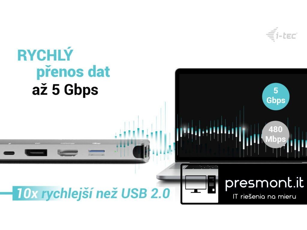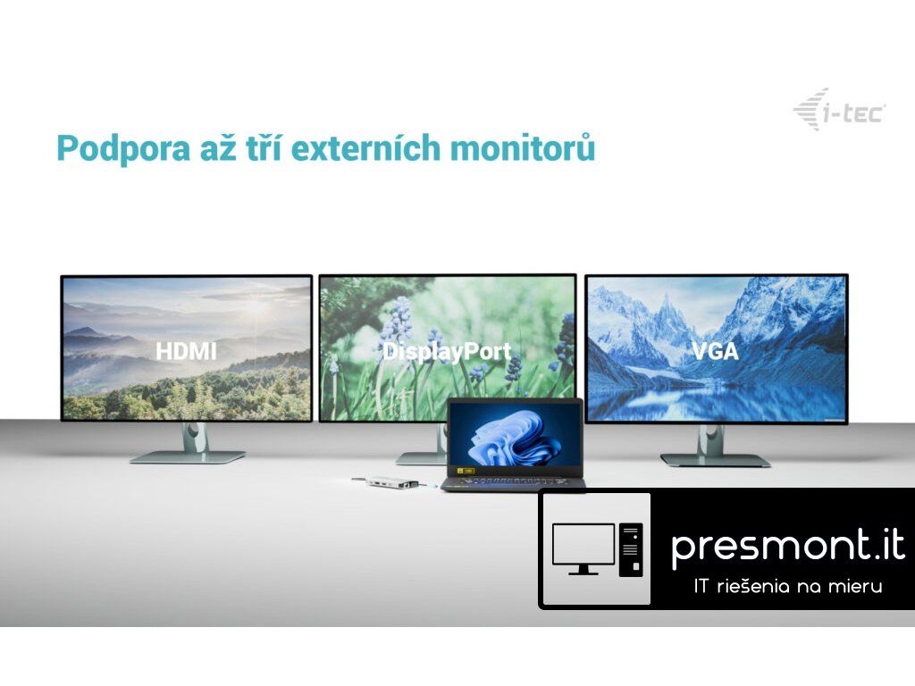 i-tec USB-C Metal Nano 3x Display (DP, HDMI a VGA) Docking Station, Power Delivery 100W