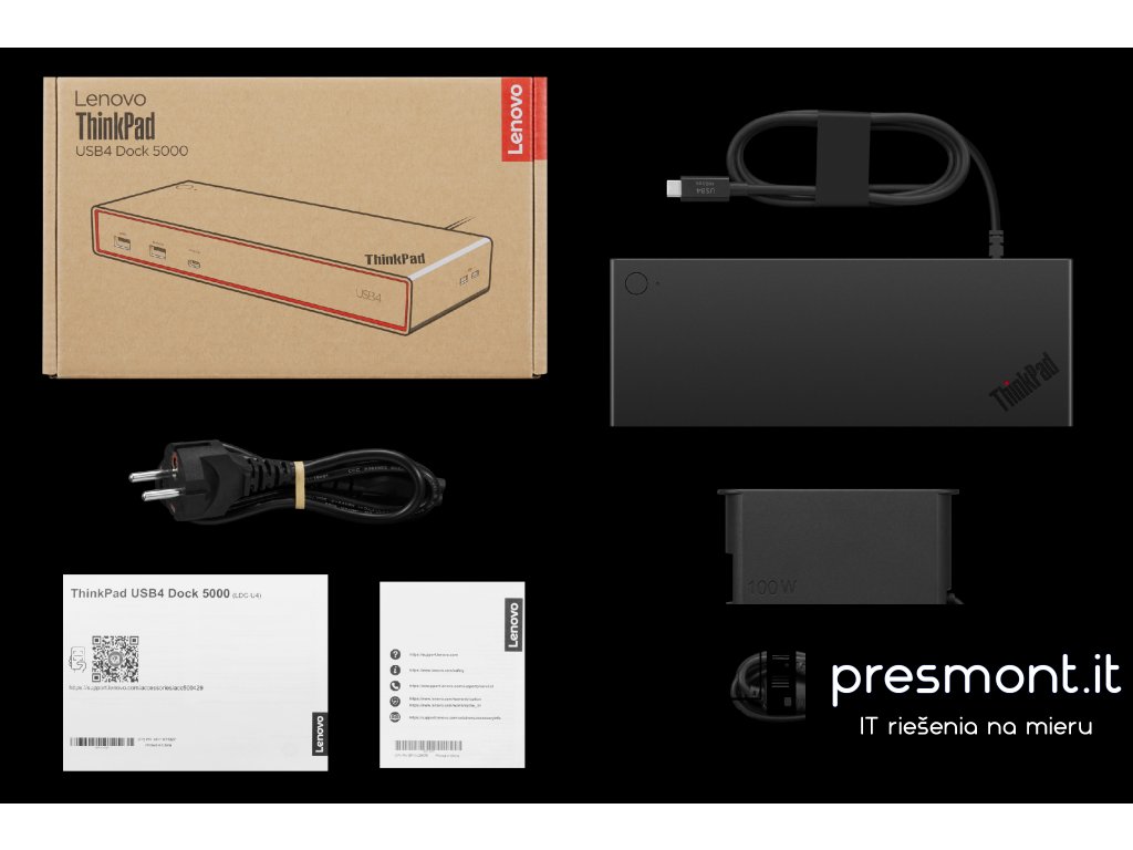 Lenovo ThinkPad USB4 Dock 5000 - PD100W (2x DP, 1x HDMI, 1x RJ45, 2x USB-C,4xUSB-A adapter) pripojit max 4x LCD