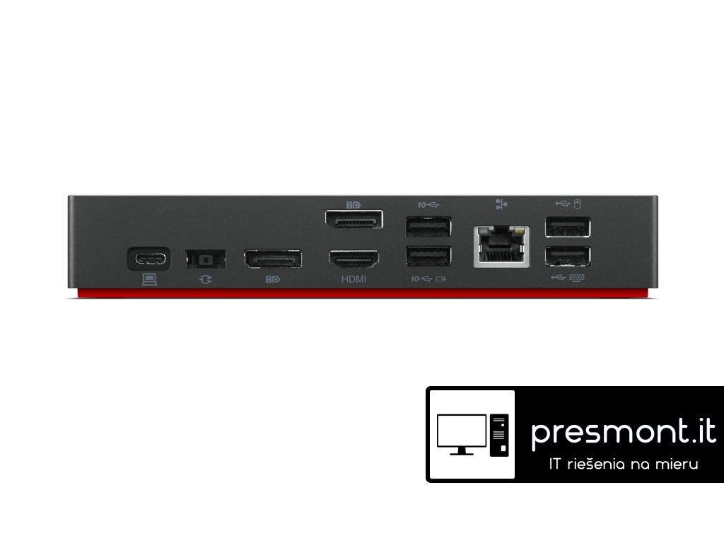 Lenovo ThinkPad Universal USB-C Dock je inovativní univerzální dokovací řešení zajišťující produktivní pracovní prostředí s možností průtoku vyššího výkonu. Posouvá uživatelů za hranice tradice a do oblasti neomezeného potenciálu. Vyzkoušejte univerzální kompatibilitu s dynamickým nabíjením energie až 100W. Univerzální dokovací stanice ThinkPad USB-C dokáže nabíjet notebook maximálně 100 W při použití 135 W napájecího adaptéru Slim Tip. Zabezpečuje všechny vaše potřeby produktivity, včetně video přenosu, data a kabelové síti, ale zároveň přináší nepřetržité napájení notebooku prostřednictvím robustního portu USB Type-C. Stačí připojit notebook nebo tablet k dokovací stanici a zvýší vaši produktivitu v okamžiku. Umožňuje tři LCD displeje, 2x při 60Hz, 1x UHD při 30Hz. Podporuje funkce správu přes síť, jako PXE boot, Wake-on LAN z režimu spánku (Sleep mode), též z režimu Hibernate mode a Power Off mode - a Pass through ThinkPad notebook MAC adresy do doku. Umožňuje kompletní ovládání zařízení ThinkPad po připojení k dokovací stanici. Pro zapínání a vypínání systému stačí stisknout ON / OFF tlačítko na dokovací stanici. Video porty: 2x Display Port, 1x HDMI port USB porty: 3x USB3.1, 2x USB2.0, 1x USB -C Zvukové porty: 1x Combo Audio Jack Ethernet: 1x gigabitový ethernet Funkce fyzického zabezpečení: 1x slot pro bezpečnostní zámek Maximální počet externích monitorů: 3 Maximální rozlišení/obnovovací frekvence: 2x 3840 x 2160 při 60 Hz, 1x 3840x2160 @30Hz Nabíjecí port: DC-IN Vstupní výkon: 90W Dodávka energie: Ano Výstupní výkon: 65 W s připojeným 90W napájecím adaptérem, 100 W s připojeným 135W napájecím adaptérem Tlačítko napájení: Ano Kompatibilita: notebooky a další zařízení s USB-C nebo Thunderbolt konektorem Obsah balení: *ThinkPad Universal USB-C dokovací jednotka *90W AC síťový adaptér (Slim Tip) *síťový napájecí kabel *leták - popis produktu *USB-C kabel Rozměry: 171 x 80 x 30,75 mm Hmotnost: 340 g Odkaz na stránku výrobce: https://support.lenovo.com/cz/cs/solutions/pd500519-thinkpad-universal-usb-c-dock-overview-and-service-partsDodatočné parametre
