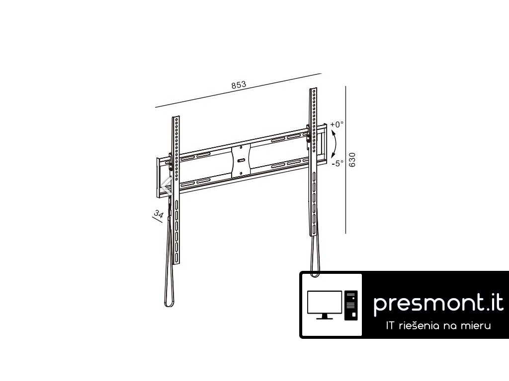 Minimální velikost obrazovky: 55'' Maximální velikost obrazovky: 100'' VESA max: 800 x 600 Maximální hmotnost televize: 65 kg Vertikální nastavení: 5 ° Vzdálenost od zdi: 34 mmDodatočné parametre