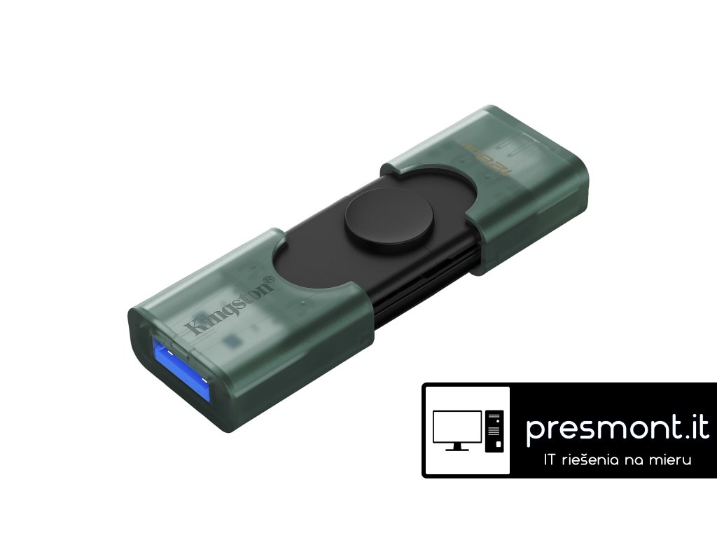 Kingston® DataTraveler® Duo je vybaven dvěma USB konektory, které fungují jak s porty USB typu A, tak USB typu C, a zajišťují tak maximální kompatibilitu. Inovativní design s dvojitým pohyblivým krytem dodává disku stylový a praktický vzhled a zabraňuje ztrátě krytu. Díky kapacitě až 256 GB2 můžete s DT Duo snadno přistupovat k dokumentům, fotografiím, videím, hudbě a dalším souborům a přenášet je mezi zařízeními USB-A a USB-C. Na produkt se vztahuje pětiletá omezená záruka, bezplatná technická podpora a legendární spolehlivost Kingston®. Rozhraní: USB Type-A a USB Type-C Rychlost: USB 3.2 Gen 1 Rozměry: 64mm x 21.2mm x 10.4mm Váha: 10g OS: Windows® 11, macOS® (v. 13.7.6 +), Linux (v. 4.4x +), Chrome OS™Dodatočné parametre