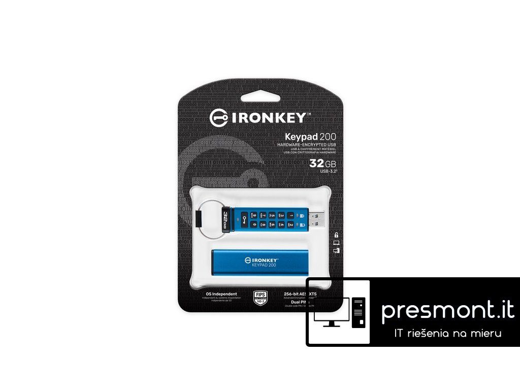 Kingston IronKey Keypad 200/32GB/USB 3.2/USB-A/Modrá