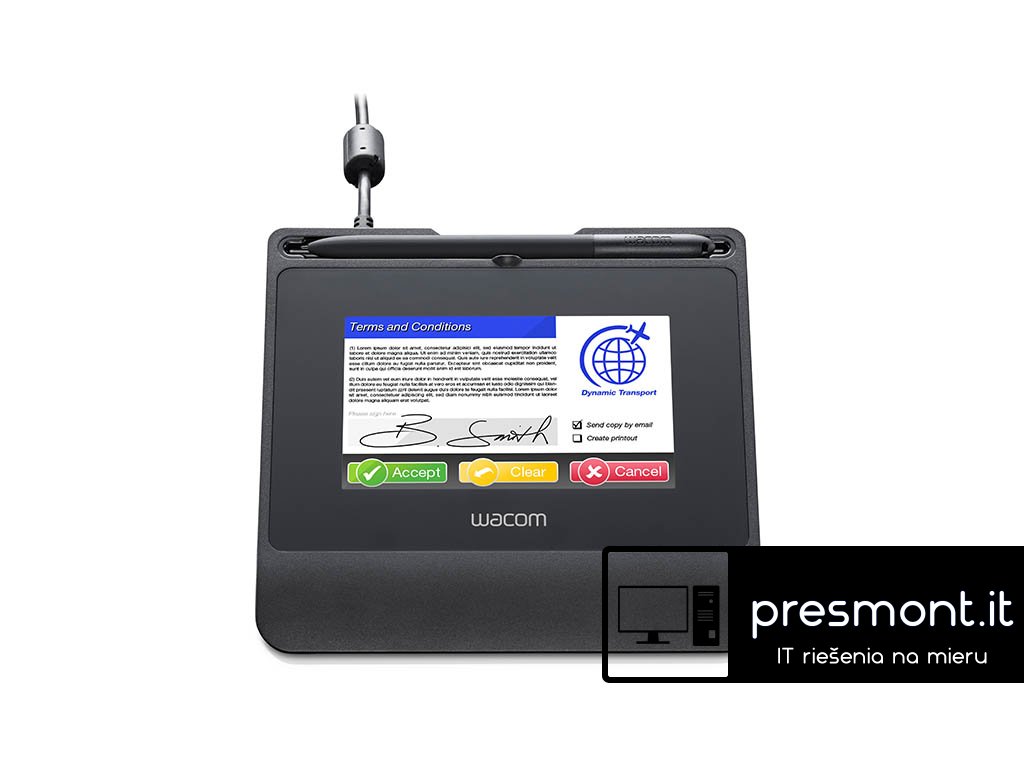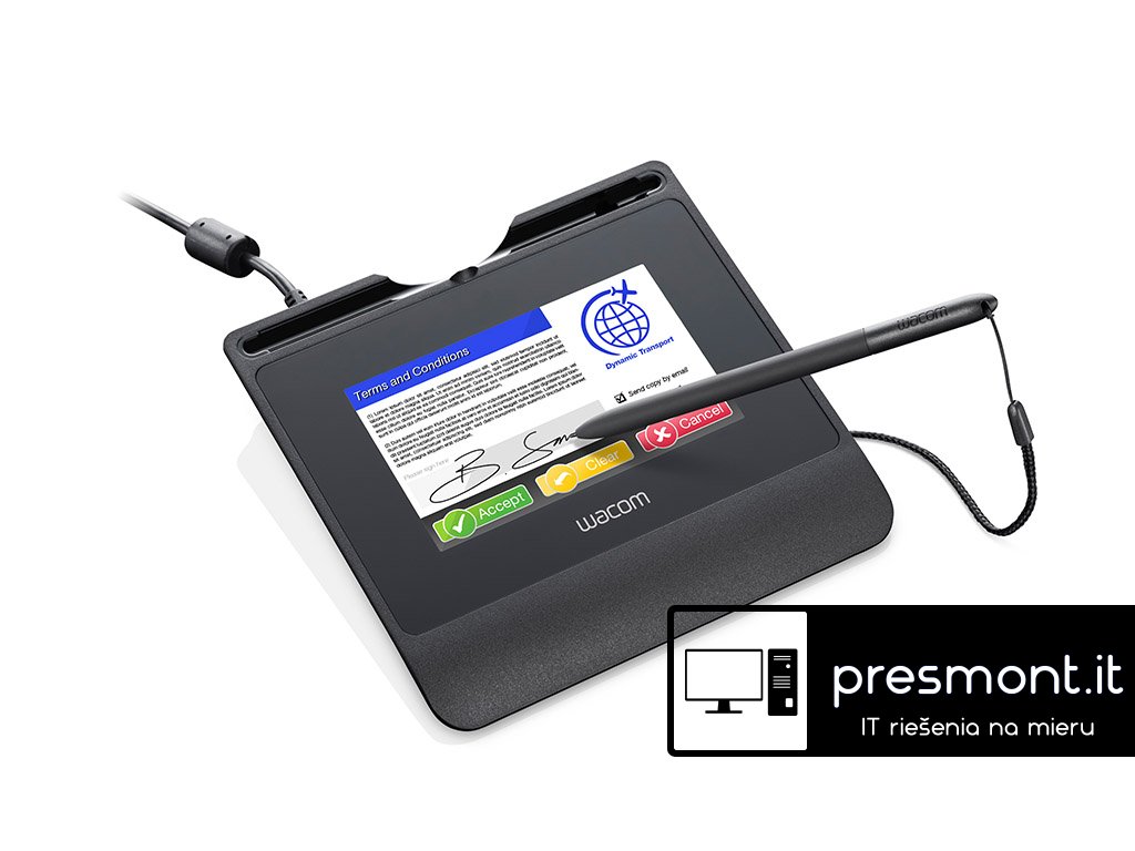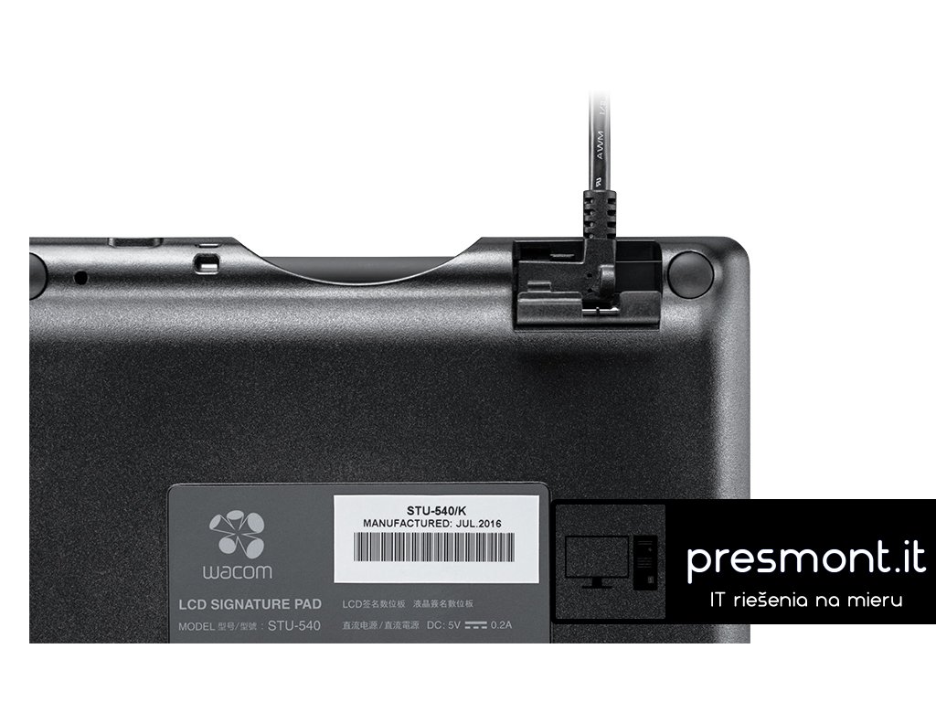 Podepisovací tablet STU-540 nabízí 5'' barevnou obrazovku s vysokým rozlišením a tvrzené trvanlivé krycí sklo. Široká škála možností připojení, šifrování na nejvyšší úrovni. * Patentované akumulátorové pero bez baterií s 1024 úrovněmi citlivosti na tlak pro přesné zachycení jedinečného profilu podpisu, včetně biometrických dat. * Tvrzené krycí sklo s antireflexní úpravou poskytuje vylepšené prohlížení a povrch podpisu s přirozeným pocitem pera na papíře. * Nejmodernější šifrování AES 256 / RSA2048 pro provádění bezpečných transakcí. * Nativní podpora pro Citrix v7.6.3 a novější ve standardním režimu USB. * Režim Virtual COM Port (VCP) je k dispozici pro kompatibilitu s Citrix v6.5 a dalšími virtualizovanými desktopovými prostředími. * Režim „Prezentace“ může spouštět reklamní a propagační zprávy přímo ze samotné klávesnice. * Přizpůsobitelná klávesnice umožňuje vstup pomocí uživatelsky definovaného uživatelského rozhraní. * Vizualizace WILL (Wacom Ink Layer Language) pro zobrazení nejlepšího a nejautentičtějšího zobrazení vašeho vlastnoručního elektronického podpisu. * UID (Unique hardware ID) lze použít k potvrzení přesné jednotky použité k zachycení konkrétního podpisu. * Sériové připojení je k dispozici jako volitelné příslušenství se samostatnou sadou příslušenství. * STU SDK (Software Development Kit) a Signature SDK jsou k dispozici pro vývojáře, kteří chtějí integrovat podporu pro podpisové podložky Wacom do svých aplikací. Specifikace: Rozměry: 163 x 157 x 10 mm Komunikační rozhraní: STU-540: USB 2.0 / RS-232 Napájení: USB Typ displeje: Amorfní TFT LCD Velikost obrazovky: 5 ''(108 x 65 mm) Nativní rozlišení : 800 x 480 pixelů Čtecí technika: Elektromagnetická rezonance (EMR) Hladina tlaku pera: 1024 (neinterpolované) Akumulátorové pero Záruka: 3 Roky https://www.wacom.com/en-tw/enterprise/business-solutions/hardware/signature-pads/STU-540 https://www.wacom.com/en-es/products/pen-tablets/one-by-wacom https://www.wacom.com/en-es/products/pen-tablets/wacom-intuosDodatočné parametre