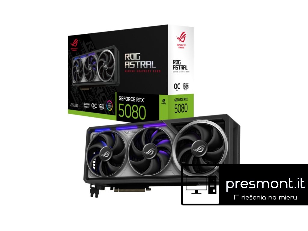 ROG-ASTRAL-RTX5080-O16G-GAMING Parametry: Grafický engine: NVIDIA® GeForce RTX 5080 CUDA jádra: 10752 Open GL: OpenGL 4.6 Engine clock: OC mode: 2790 MHz, Default mode: 2760 MHz(Boost clock) Paměťové rozhraní: 256 bit Video paměť: 16 GB GDDR7 Rychlost paměti: 30 Gbps AI výkon: 1899 Napájecí konektor: 1 x 16-pin Vstupy a výstupy: 2 x Native HDMI 2.1b, 3 x Native DisplayPort 2.1b HDCP: HDCP 2.3 Max. rozlišení: 7680 x 4320 Maximální podpora výstupů: 4 Doporučený výkon zdroje: 850 W Bus standard: PCIE 5.0Dodatočné parametre