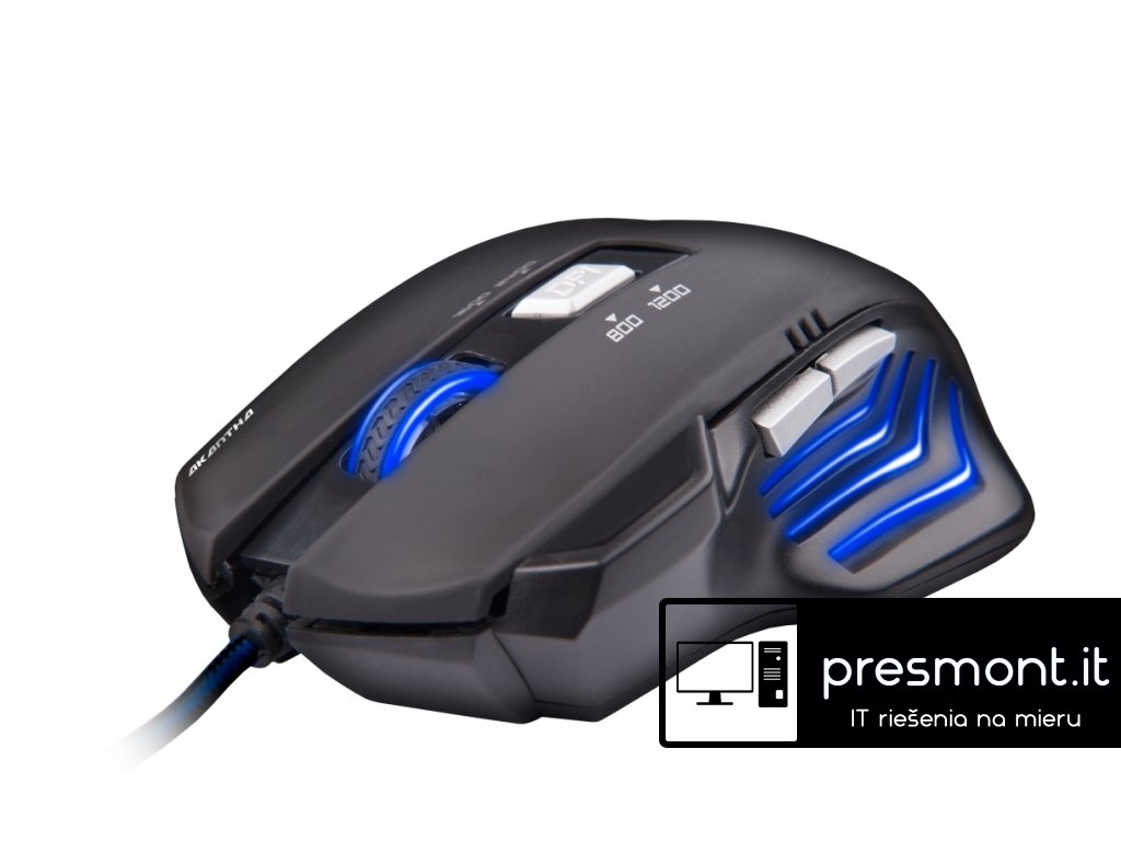 Nová herní myš C-TECH AKANTHA se ve Vašich rukou promění ve skutečnou zbraň. První, co uživatele zaujme, je perfektní design a skvělé ergonomické tvarování myši s pogumovaným povrchem. Myš je osazena optickým senzorem o rozlišení 2400DPI, které lze ve 4 úrovních měnit pomocí DPI tlačítka. Myš nabídne celkem 6 tlačítek, kterým lze ve většině PC her přiřazovat jednotlivé herní funkce. Skvělému designu sekunduje velmi elegantní modré podsvícení myši. PARAMETRY Senzor: Optický Rozlišení: 2400 DPI Počet tlačítek: 6 LED podsvícení: Ano, modré Kabel: 2m, opletený se stíněním Povrch: PogumovanýDodatočné parametre