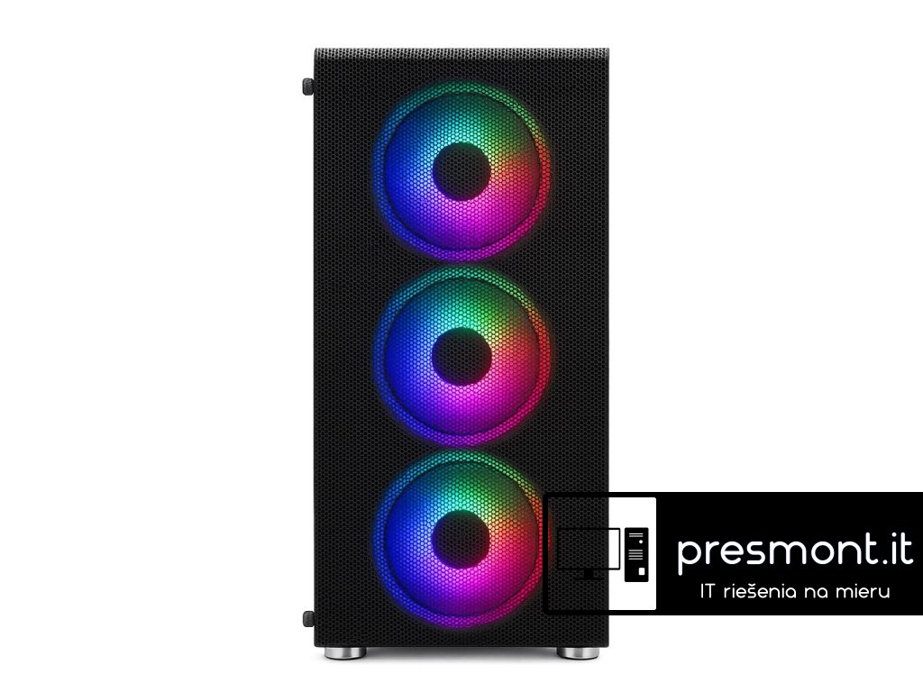 Štýlový dizajn skrinky so sieťovaným predným panelom umožňuje výhľad na 3 predné 12cm RGB LED ventilátory a zároveň zabezpečuje vynikajúce prúdenie a cirkuláciu vzduchu.