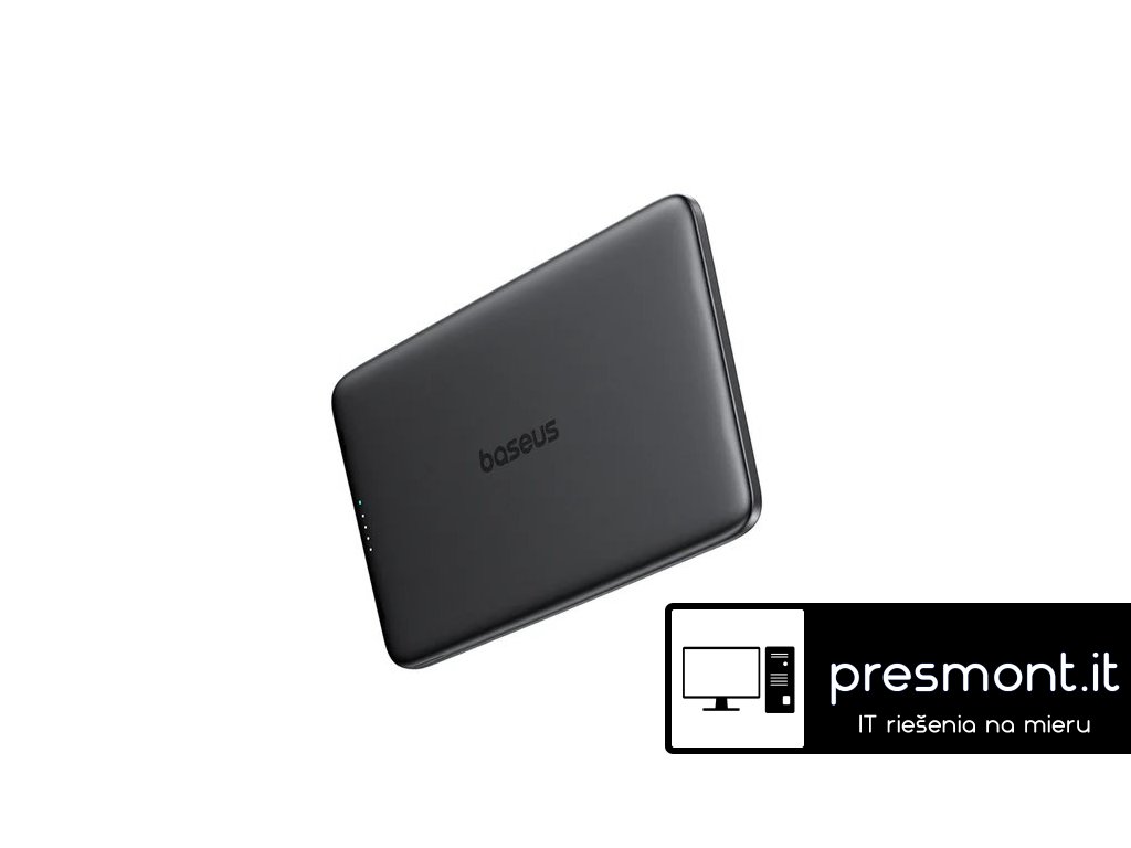 Ultra tenká a lehká powerbanka s magnetickým uchycením Baseus PicoGo je navržena pro budoucnost mobilního nabíjení. S tloušťkou pouhých 7,6 mm a hmotností 107 g je lehčí než iPhone a připomíná svou velikostí platební kartu. Díky tomu ji můžete snadno nosit v kapse, peněžence nebo kabelce – skoro o ní nevíte, dokud ji nepotřebujete. Druhá baterie pro váš telefon Powerbanka slouží jako ideální doplněk pro každodenní použití – dodává energii přesně tehdy, když ji potřebujete. Díky magnetickému uchycení stačí jen „přicvaknout“ a nabíjení začne automaticky. Prémiové materiály a elegantní design Kombinace hliníkové slitiny a měkkého silikonu zajišťuje nejen stylový vzhled, ale i komfort při používání. Powerbanka je odolná proti poškrábání, otiskům prstů a je příjemná na dotek. Stabilní a přesné magnetické přichycení S magnetickou silou 11 N a přesným zarovnáním díky 1:1 magnetickému prstenci drží pevně na zadní straně telefonu bez klouzání nebo přerušení nabíjení. Chytrá ochrana a průběžné nabíjení Vestavěný AI čip reguluje teplotu a optimalizuje nabíjení pro bezpečný provoz. Díky průchozímu nabíjení můžete zároveň dobíjet telefon i samotnou powerbanku. Specifikace: *Kapacita: 5000 mAh *Materiál: hliníková slitina, silikon *Vstup (USB-C): 5V/3A, 9V/1.67A *Výstup (USB-C): 5V/2.4A, 9V/2.22A, 12V/1.5A (až 20W) *Bezdrátový výstup: 5W / 7,5W / 15W *Celkový výstup: 5V/2.4A *Magnetická síla: 11 N *Rozměry: 99 × 66 × 7,6 mm *Hmotnost: 107 g *Funkce průchozího nabíjení: Ano *USB-C Kabel součástí baleníDodatočné parametre