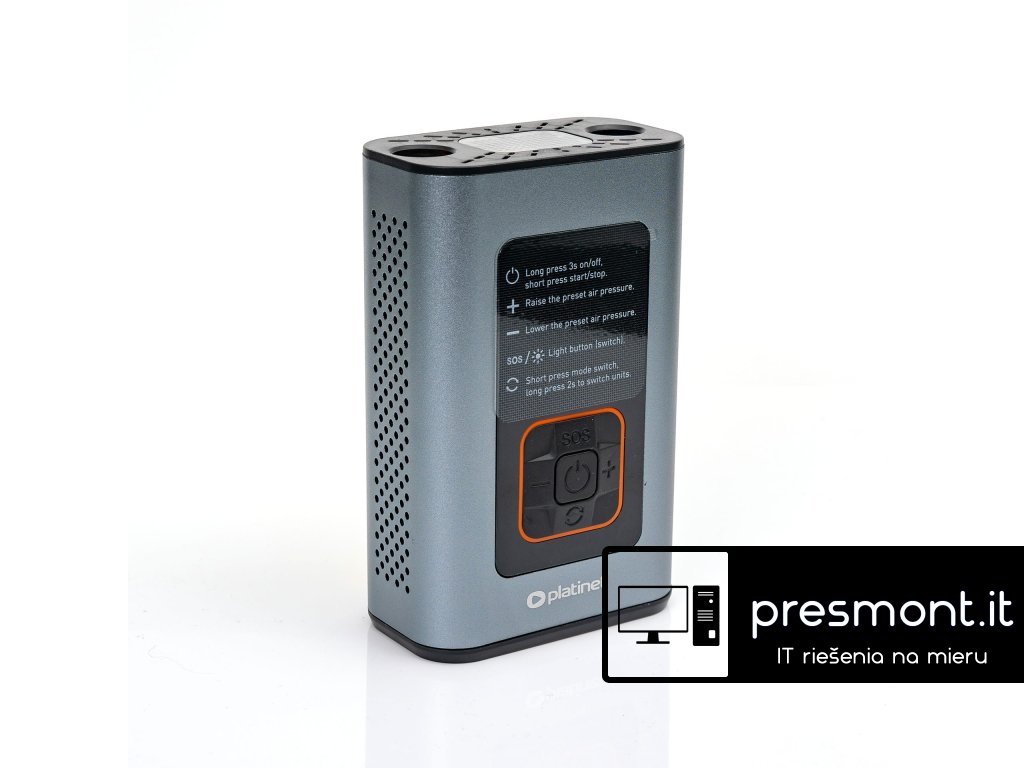 Platinet 3v1 Powerbanka 4000 mAh, digitálny vreckový kompresor 10 BAR, LED svietidlo, strieborné