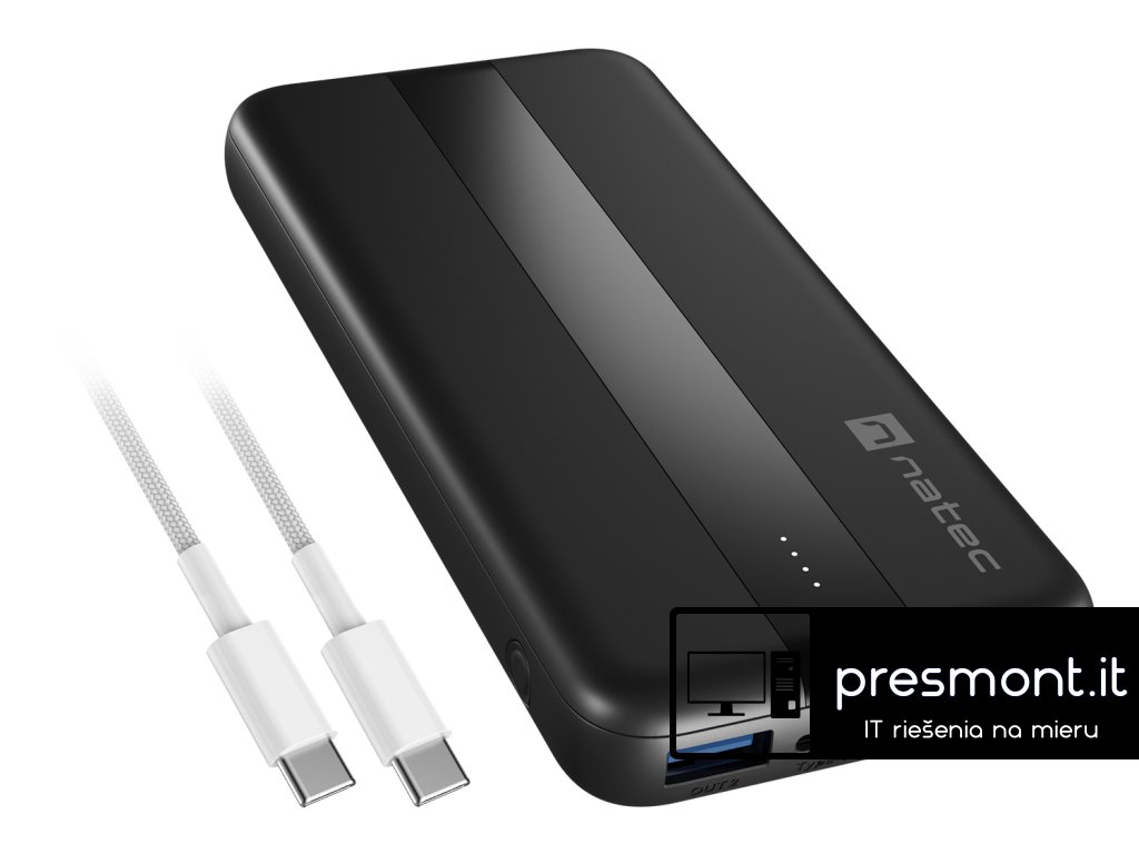 Power banka Natec TREVI SLIM Q V2 10000mAh, 2X USB-A 18W, 1X USB-C 20W, USB-C - USB0-C kábel, čierna