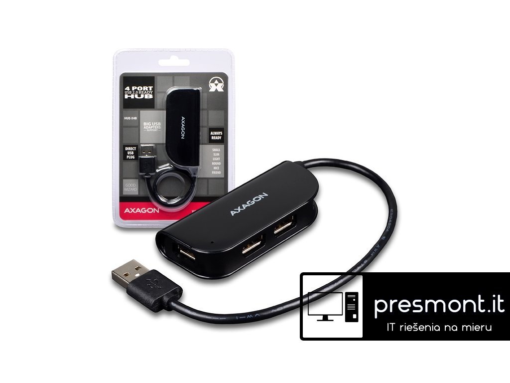 AXAGON HUE-X4B, 4x USB2.0 READY hub, čierny