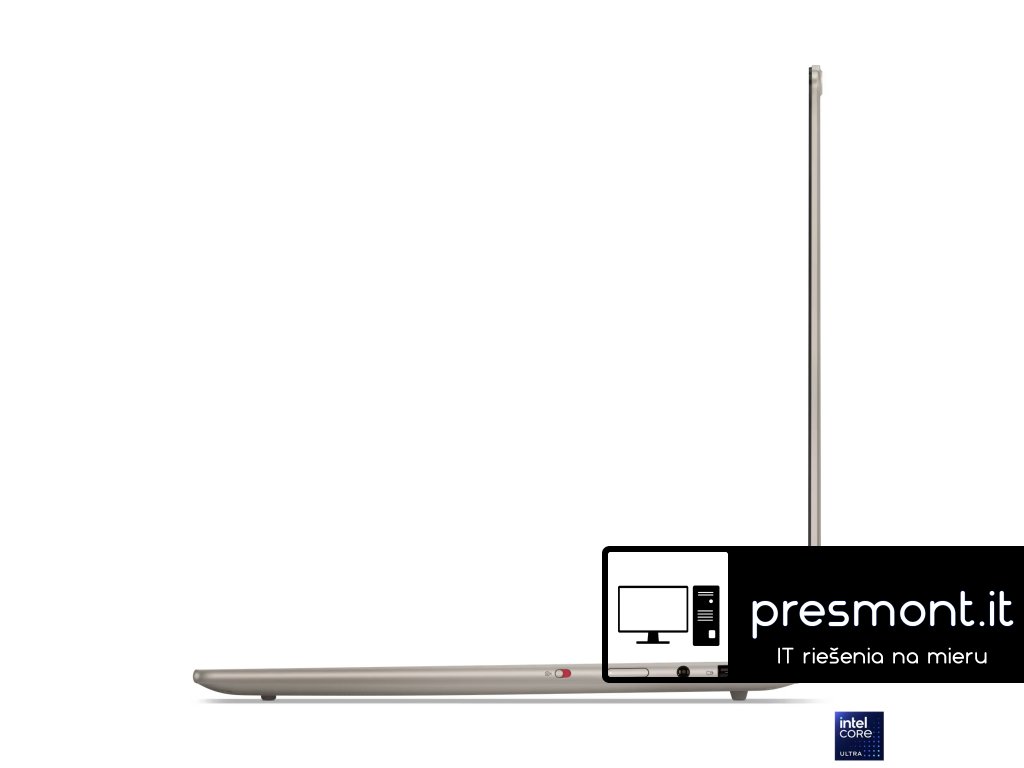 Lenovo Yoga Slim 7 14ILL10 Copilot+ PC * armádní standard MIL-STD-810H * Intel® Evo™ * detekce lidské přítomnosti ultrazvukem Operační systém: Windows® 11 Home Procesor: Intel Core Ultra 5 226V (8 jader - 4P + 4LPE, 8 vláken, P-core 2,1/4,5 GHz, LPE-core 2,1/3,5 GHz, 8 MB cache) NPU: Integrovaný Intel® AI Boost, až 40 TOPS Paměť: 16GB integrovaná LPDDR5x-8533 Počet slotů (celkem/volných): bez slotů (0/0) Maximální velikost: 16GB, nelze navýšit Pevný disk: 1TB SSD M.2 2242 PCIe® 4.0x4 NVMe® Sloty pevného disku: 1x M.2 SSD Optická mechanika: ne Čtečka paměťových karet: microSD Displej: 14'' 2,8K WQXGA+ (2880x1800) OLED, 500 nitů, lesklý, 100% DCI-P3, 120 Hz, Eyesafe®, Dolby Vision®, DisplayHDR™ True Black 1000, X-Rite® Grafická karta: Intel Arc 130V Audio: 4 stereo reproduktory, 2x 2W (woofery), 2x 2W (výškové reproduktory), optimalizované s Dolby Atmos®, Smart Amplifier (AMP), kodek Cirrus Logic® CS42L43, HD, SoundWire®, 4x mikrofon Webkamera: 5MP + IR se závěrkou Polohovací zařízení: beztlačítkový vícedotykový touchpad se skleněným povrchem, podpora Precision TouchPad (PTP), 80x135mm Podsvícená klávesnice: ano Numerická klávesnice: ne Čtečka otisků prstu: ne Pero: ne Síť: ne Bezdrátová komunikace: WLAN + Bluetooth (Wi-Fi® 7, 802.11be 2x2 + BT5.4) Porty USB: * 1x USB-A (USB 5Gb/s/USB 3.2 Gen 1), Always On * 2x USB-C® (Thunderbolt™ 4/USB4® 40Gb/s), s USB PD 3.0 a DisplayPort™ 2.1 Další porty: * 1x kombinovaný konektor pro sluchátka/mikrofon (3,5mm) * 1x HDMI® 2.1, až 4K/60Hz * 1x čtečka microSD karet Bezpečnostní čip: firmware TPM 2.0 Baterie: integrovaná 70Wh Li-Pol Výdrž baterie: 16,7h (MobileMark® 30@250 nitů) Napájení: 65W, USB-C® (2pin) Barva: Seashell Materiál: hliník Rozměry: 312x219,3x13,9mm Hmotnost: cca 1,19kg Záruka: 3 roky Onsite Odkaz na stránku výrobce: https://psref.lenovo.com/Detail/Yoga_Slim_7_14ILL10?M=83JX003BCKDodatočné parametre