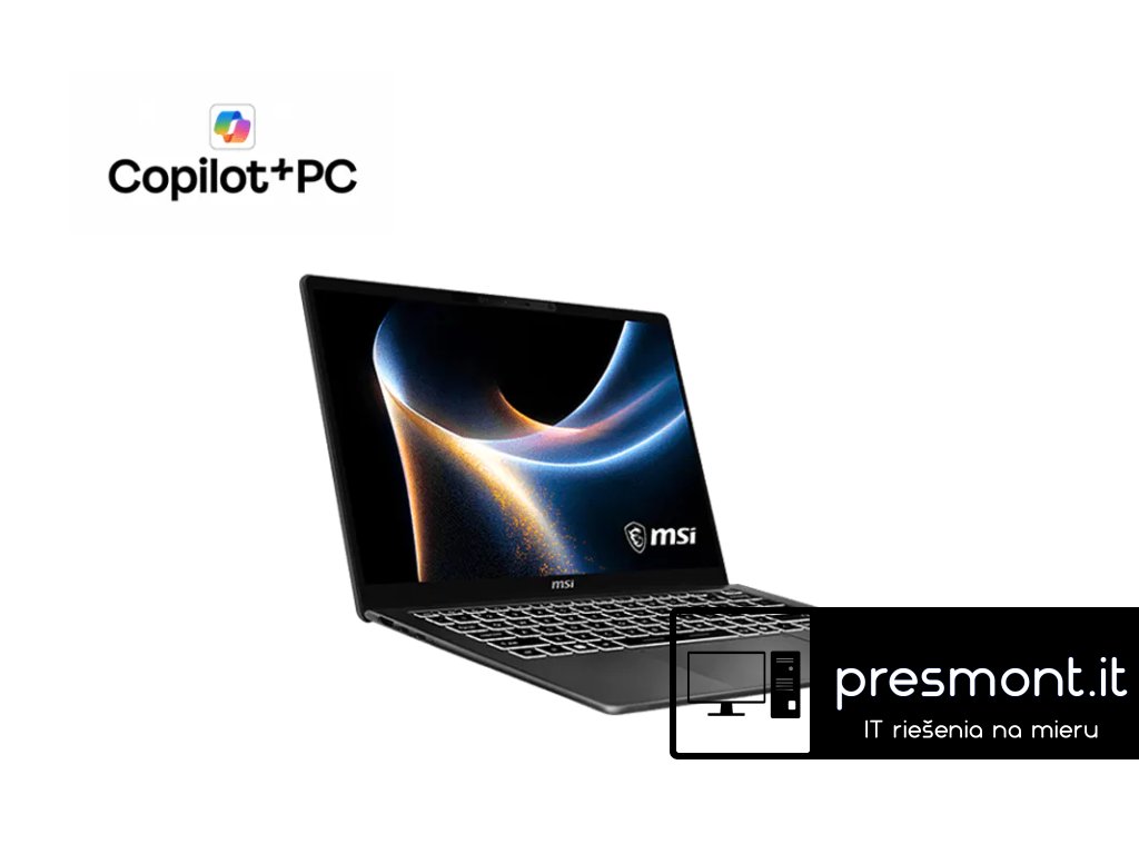MSI Prestige 14 AI+ D3MG-024CZ *Copilot+ PC Operační systém: Windows 11 Pro Procesor: Intel® Core™ Ultra 7 355, 8 jader (4 P-cores + 4 LPE-cores), 8 vláken, 12 MB Intel Smart Cache, Max Turbo Frequency 4.7 GHz, 49 NPU TOPS, Intel Evo Paměť: 32GB LPDDR5x Maximální velikost: 32GB Pevný disk: 1TB SSD M.2-2280 M-KEY Sloty pevného disku: 1x M.2 SSD slot (NVMe PCIe Gen4) Optická mechanika: ne Čtečka paměťových karet: ne Displej: 14'' FHD (1980x1200) OLED lesklý, 60Hz, 300 nitů Grafická karta: Integrovaná Intel® Graphics Audio: 2x 2W audio reproduktory, 2x 2W basové reproduktory, prostorový mikrofon (3 mic) Web kamera: IR FHD (30fps@1080p) s HDR a 3D noise Reduction+ Polohovací zařízení: Touchpad Podsvícená klávesnice: ano Numerická klávesnice: ne Čtečka otisků prstů: ano Síť: ne Bezdrátová komunikace: Intel Killer Wi-Fi 7 BE1775, Bluetooth v6.0 Konektory USB: * 2x Thunderbolt 4 (DisplayPort/ Power Delivery 3.0) * 2x Type-A USB3.2 Gen2 Další konektory: * 1x HDMI 2.1 (8K @ 60Hz / 4K @ 120Hz) * 1x Mic-in/Headphone-out Combo Jack Zabezpečení: Diskrétní Trusted Platform Module(dTPM) 2.0, Fingerprint Security, Microsoft Pluton Security Technology, Secured-core PCs, Webcam Shutter Napájení: bez adaptéru Baterie: 81Whr, 4 cells Barva: Šedá (Platinum Gray) Rozměry(ŠxHxV): 315,6 x 221,9 x 11,9-13,9 mm Hmotnost: 1,32 kg Záruka: 3 roky Odkaz na stránky výrobce: https://cz.msi.com/Business-Productivity/Prestige-14-AI-Plus-D3MX/OverviewDodatočné parametre