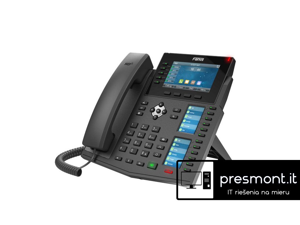 Špičkový IP telefon Fanvil X6U se třemi barevnými displeji, s 6 linkovými tlačítky s LED indikátorem a vestavěným Bluetooth poskytuje přímý přístup k instrukcím s cílem nabídnout větší flexibilitu a produktivitu, aby splnil vysoké požadavky firem. Reproduktor Harman a širokopásmový kodek G.722 a Opus v tomto zařízení vám poskytují pohlcující HD audio zážitek při různé kvalitě sítě. Díky intuitivnějšímu designu s 4,3“ barevným LCD 480x272 s 5 linkovými tlačítky s LED indikací, dvěma 2,4“ bočními barevnými LCD s 12 dvoubarevnými fyzických tlačítky, umožňuje Fanvil X6U uživatelsky přívětivější přizpůsobení funkcí. V kombinaci s příslušenstvím, jako je EHS náhlavní souprava přes kabel EHS, WiFi přes dongle a vestavěné Bluetooth, je Fanvil X6U navržen tak, aby podporoval vaši flexibilitu při práci. Hlavní funkce: - HD audio s reproduktorem Harman a širokopásmovým kodekem G.722 a Opus - 4,3'' barevný displej s rozlišením 480 x 272 pixelů - dva 2,4'' barevné boční displeje s rozlišením 320 x 240 pixelů - 20 SIP linek - 60 DSS tlačítek - 5 linkových kláves s LED indikátorem - dva gigabitové porty, integrované PoE - Vestavěného Bluetooth - Podpora EHS bezdrátové náhlavní soupravy - WiFi přes WiFi dongle - Protokoly IPv4, IPv6Dodatočné parametre