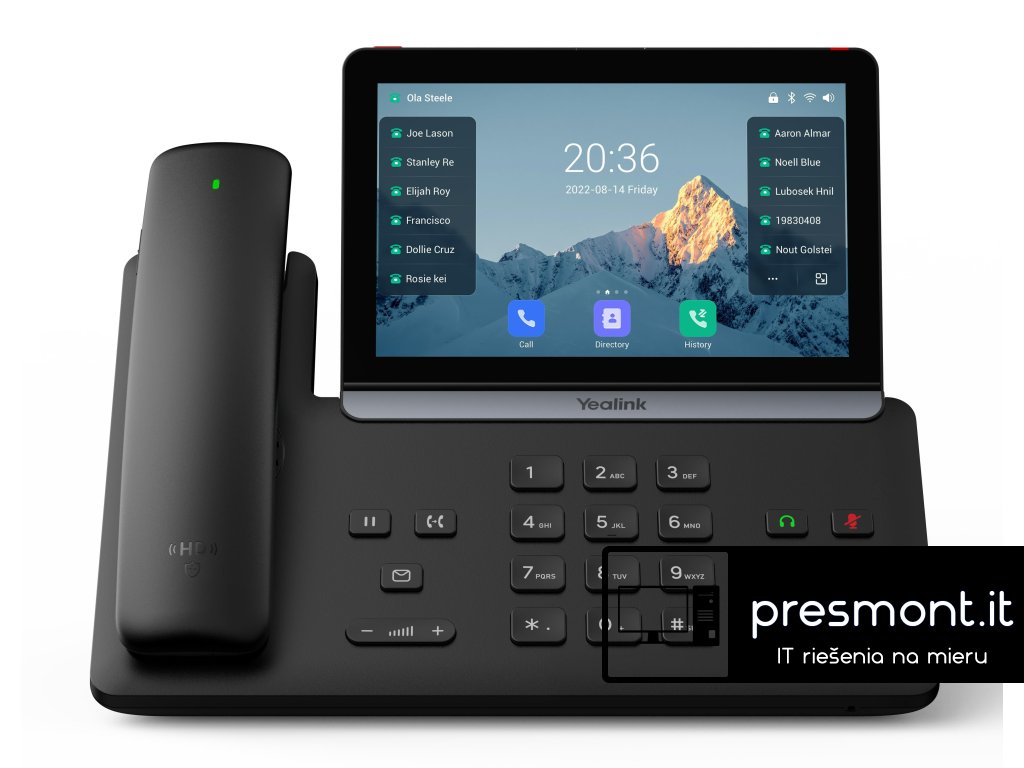 Yealink SIP-T88W Pro je snadno použitelný chytrý firemní telefon, který poskytuje profesionálům obohacený zážitek z hovorů s HD zvukem. Tento chytrý firemní telefon umožňuje komunikaci zvyšující produktivitu s jednoduchostí standardního telefonu. S Bluetooth sluchátkem Yealink BTH88 se uživatelé mohou během hovoru volně pohybovat – žádné další zmeškané hovory, když opustí svůj stůl. S dosahem až 10 metrů (30 stop) nabízí Bluetooth sluchátko Yealink uživatelům větší flexibilitu v kanceláři. SIP-T88W Pro, založený na operačním systému Android 13, využívá nové uživatelské rozhraní, které je stručnější a zaměřenější na podnikání, což výrazně zlepšuje efektivitu práce uživatelů. Klíčové vlastnosti: Android 13 Řešení hardwarového šifrování TEE 7palcová (1024 x 600) kapacitní nastavitelná dotyková obrazovka Podporuje Yealink Bluetooth Handset BTH88 Optimální HD zvuk, technologie Yealink Noise Proof Yealink SDK (Software Development Kit) Vestavěné Bluetooth 5.0 a dvoupásmové 2.4G/5G Wi-Fi 2 x USB 2.0 porty (USB typu A/Type-C) pro USB headset, média a úložné aplikace 16 VoIP účtů Dvouportový gigabitový Ethernet, podpora PoE Možnost montáže na zeď Podporuje až 3 rozšiřující moduly EXP55 Podporuje platformu pro správu zařízení Yealink/Unify Square Užívejte si bezdrátové svobody Yealink SIP-T88W Pro podporuje zcela nový bezdrátový Bluetooth telefon BTH88, který poskytuje až 17 hodin hovoru a 46 hodin v pohotovostním režimu. Umožňuje uživateli opustit stůl a pokračovat v hovoru. Nejenže poskytuje křišťálově čistou hlasovou komunikaci, ale také zvyšuje flexibilitu pro kancelářské pracovníky. Lepší uživatelský zážitek se systémem Android 13 Yealink SIP-T88W Pro, založený na systému Android 13, nejenže dědí výhody předchozí generace, ale je také kompatibilní s více aplikacemi třetích stran, což uživatelům přináší větší pohodlí. Administrátoři si mohou snadno nainstalovat další aplikace pro Android a zlepšit tak spolupráci a produktivitu. Nově navržené uživatelské rozhraní Yealink je plynulejší, business activity a snadněji použitelné. HD Audio Yealink SIP-T88W Pro obsahuje nejnovější verzi technologií Yealink Optimal HD Voice, včetně technologie Yealink Noise Proof, která pomáhá maximalizovat akustický výkon telefonu, náhlavní soupravy a zejména hlasitého odposlechu. A sluchátko kompatibilní s naslouchátky (HAC) pomáhá osobám se ztrátou sluchu slyšet hlas jasněji. Řešení hardwarového šifrování TEE Yealink SIP-T88W Pro využívá řešení hardwarového šifrování TEE, které vám může poskytnout bezpečnější ukládání dat.Dodatočné parametre
