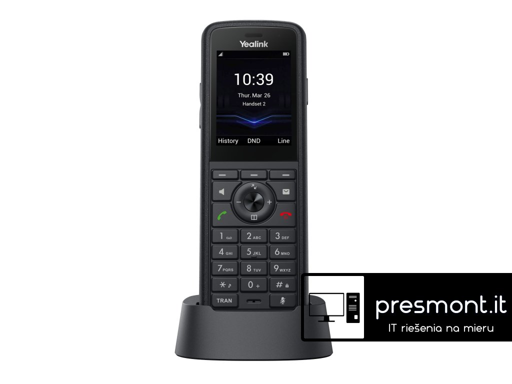 Yealink W59R Pro je certifikován podle přísné normy IP67, což z něj činí profesionální, odolný DECT telefon vybavený integrovaným Bluetooth a vibračním alarmem. Je ideální pro prašná, vlhká nebo drsná prostředí. Kombinuje výhody bezdrátové komunikace s bohatými funkcemi telefonů VoIP a je plně kompatibilní s vícebuněčnými systémy Yealink W75/W80/W90 a jednobuněčným systémem W70B, což zajišťuje bezproblémový roaming a předávání hovorů. Tento telefon poskytuje uživatelům pohodlí a vynikající zážitek z mobilní komunikace v rámci zón i mezi nimi a udržuje stabilitu ve složitých a náročných lokalitách. Jako robustní a odolný telefon se W59R Pro vyznačuje optimální kvalitou HD zvuku od Yealinku a zahrnuje několik předních technologií, jako je FNR (flexibilní redukce šumu) a plný duplex. To zajišťuje stabilní a vysoce kvalitní zvukový zážitek i v hlučných nebo rušivých oblastech. Kompletní funkce alarmu a integrovaný G-senzor navíc zvyšují bezpečnost práce osob pracujících v nebezpečném prostředí. Klíčové vlastnosti: Bezproblémové předání a roaming Robustní DECT telefon s krytím IP67 Odolný proti poškrábání a dezinfekčním prostředkům 1,8'' barevný TFT displej s rozlišením 128x160 a intuitivním uživatelským rozhraním HD hlas a FNR (flexibilní redukce šumu) Vestavěný Bluetooth 4.2 Vibrační alarm Funkce alarmu pro bezpečnost práce: tlačítkový alarm, alarm v případě nečinnosti, alarm při pádu osoby a spuštěný alarm Až 28 hodin hovoru (18 hodin s Bluetooth headsetem) Až 360 hodin v pohotovostním režimu (200 hodin s Bluetooth headsetem) Podsvícení a zámek klávesnice Plně kompatibilní s Yealink Single-Cell W70B a W75/W80/W90 Multi-Cell System pro bezproblémový roaming a předání Nárazuvzdornost, prach a voděodolnost Yealink W59R Pro je všestranný společník s certifikovaným stupněm krytí IP67, na kterého se můžete plně spolehnout v náročném pracovním prostředí. Nejenže odolává prachu, stříkající vodě, ale jeho odolný pogumovaný povrch chrání telefon před pádem a poškrábáním. W59R Pro se tak dokáže chránit před pádem z výšky až 2 metrů, ponořením do vody do hloubky až 1 metru po dobu maximálně 30 minut a také před veškerým vniknutím prachu. Volná mobilní komunikace W59R Pro je plně kompatibilní s jednobuněčnými systémy Yealink W70B a vícebuněčnými systémy W75/W80/W90 a umožňuje uživatelům bezproblémový roaming a předávání hovorů. Uvolněte si ruce pomocí Bluetooth headsetů a klipů na opasek, když je pro vás nepohodlné držet sluchátko, například v továrně nebo ve skladu. Vibrační alarm vám zároveň zabrání zmeškat hovory v hlučných místech. Stručně řečeno, W59R významně přispívá k realizaci skutečné mobilní komunikace. Funkce alarmu Řada perfektních funkcí alarmu, včetně stisknutí tlačítka, zastavení pohybu, pádu osoby a provozu, má za cíl minimalizovat bezpečnostní rizika. Administrátor může pro různé členy nakonfigurovat různé typy alarmů a tísňová volání budou odeslána automaticky, jakmile nastane nouzová situace. Technologie DECT Technologie Yealink DECT se zaměřuje na vysoce kvalitní audio VoIP (širokopásmové) a datové aplikace s bitovou rychlostí. Nejsme však kompatibilní se zařízeními DECT třetích stran (základní stanice, telefony atd.).Dodatočné parametre