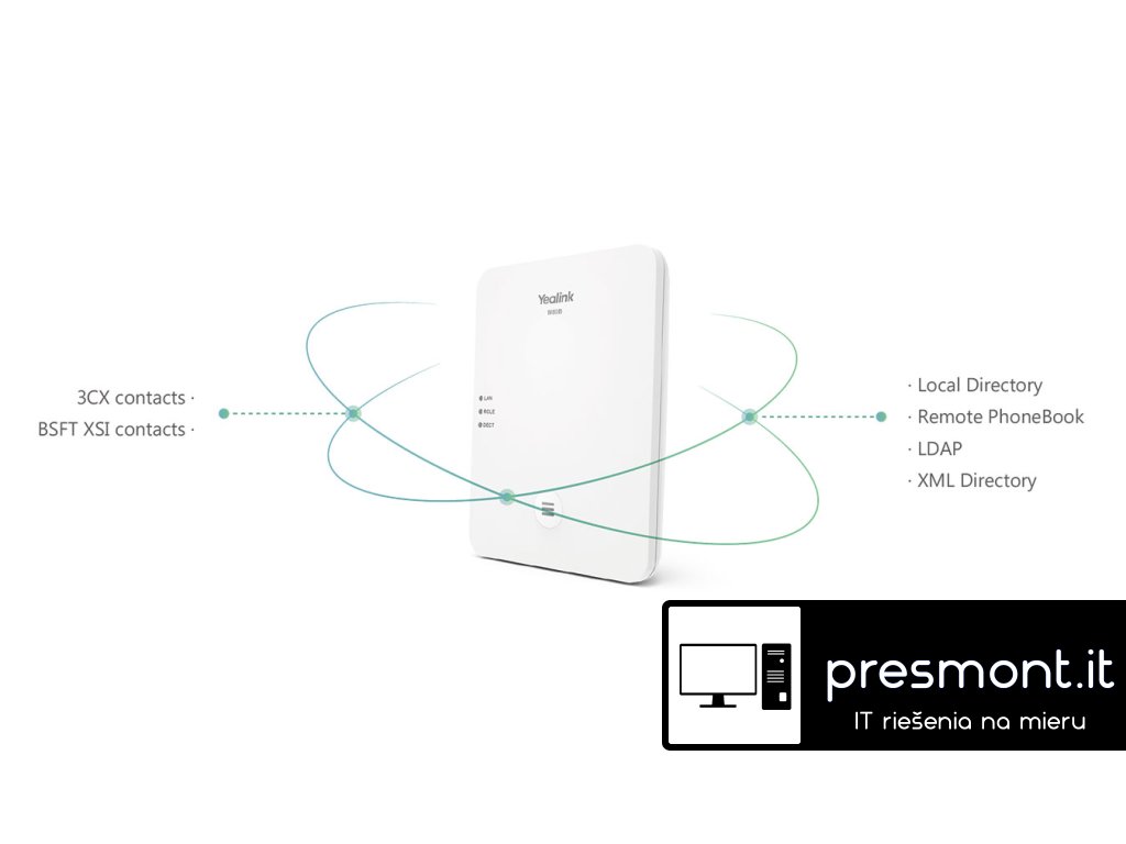 Multi-cell systém Yealink W80B IP DECT základnová stanice. Tento Yealink DECT produkt přináší firemním uživatelům škálovatelnost a zvýšenou mobilitu, jde o bezproblémové řešení předávání a roamingu hovorů. DECT IP Multi-Cell systém poskytuje stabilní komunikační zážitek a jednoduché nasazení služby pokrývající více scénářů, včetně skladů, hotelů, obchodů, kanceláří a další velké prostory, které vyžadují použití řešení s více buňkami. DECT IP Multi-Cell systém poskytuje bezproblémové řešení roamingu, které uživatelům umožňuje volný pohyb ve velkých vnitřních nebo venkovních prostorech. Systém podporuje až 30 základnových stanic a 100 telefonů. Uživatelé této bezdrátové sítě si mohou užít flexibility, bezproblémového roamingu, HD kvality zvuku. Yealink W80B pracuje se sluchátky W56H a W53H. Multi-cell systém Yealink W80 IP DECT podporuje propojení jednoho W80DM DECT manageru a až 30 W80B základnových stanic. Tento systém podporuje registraci až 100 koncových zařízení W53H, W56H, CP930W a DD telefonů (T41S + DD10K). Díky podpoře až 100 souběžných hovorů tento systém zlepšuje kvalitu komunikace tím ,že se vyhne obsazovacímu tónu. Systém nabízí snadný přístup k několika telefonním seznamům, včetně lokálního a vzdáleného telefonního adresáře, LDAP a XML telefonního seznamu. Navíc je široce kompatibilní s PBX kontakty, včetně 3CX a BSFT XSI.Dodatočné parametre