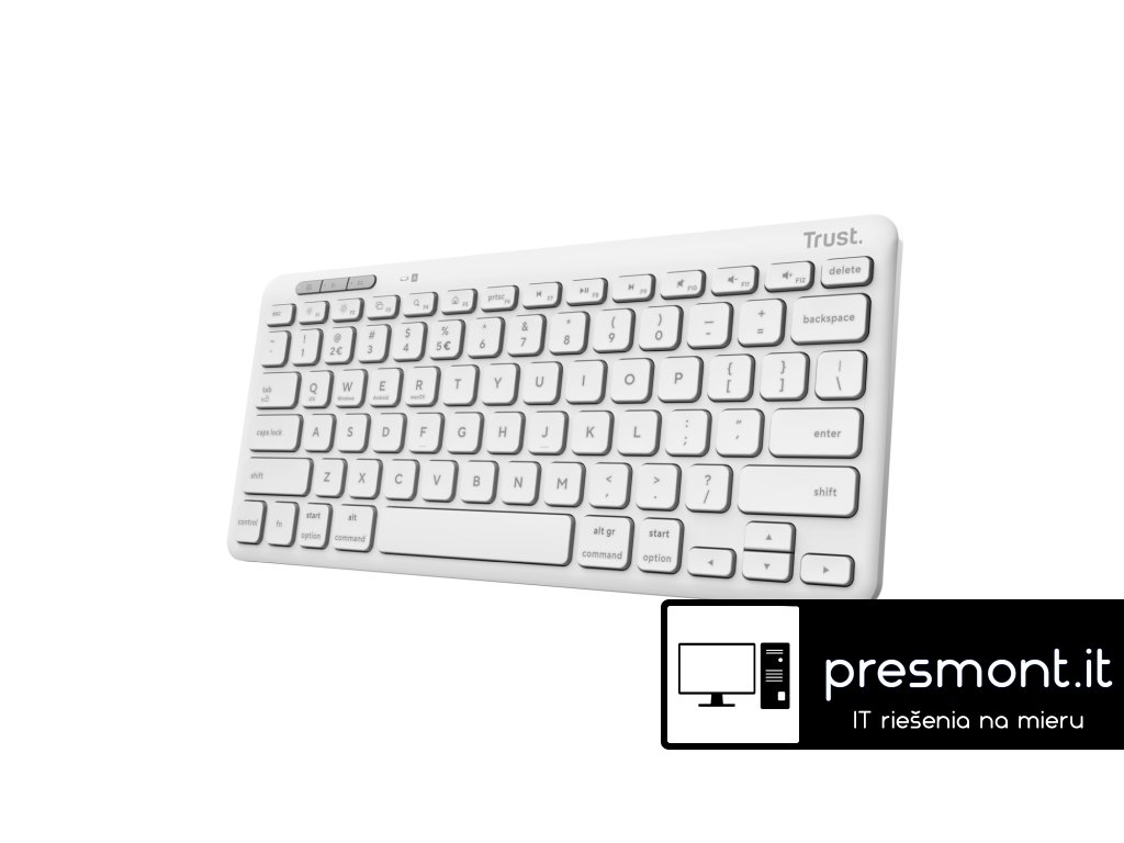 TRUST Lyra Kompaktní bezdrátová klávesnice bílá Kompaktní, vícefunkční bezdrátová klávesnice umožňující snadné a pohodlné připojení, vyrobena z recyklovaných materiálů. Miluješ multitasking? Stejně tak i Lyra – s možností připojení až k třem zařízením pomocí USB přijímače a 2x Bluetooth můžeš snadno přepínat mezi psaním na telefonu, tabletu a počítači pomocí tří dedikovaných tlačítek. Speciální funkce: Malé rozměry, lehká váha Celková hmotnost: 301 g Hmotnost hlavní jednotky: 301 g Rozměry: 126 mm x 286 mm x 17 mm Tlačítko zapínání/vypínání: ano Životnost klávesy: 10 000 000 stisknutí Typ připojení: bezdrátové Bezdrátové protokoly: RF 2.4GHz, BluetoothDodatočné parametre