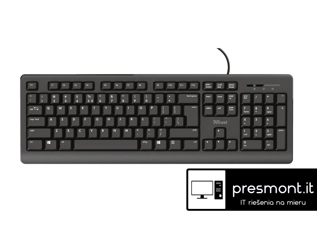 Trust Primo Keyboard klávesnice plné velikosti s tichými klávesami a designem odolným proti polití. Klávesnice přicházejí ve všech tvarech a velikostech, ale co když potřebujete pouze základní funkce? Trust Primo to přesně dělá. Má rozložení v plné velikosti, klávesy odolné proti polití a je výškově nastavitelné. A díky tichým klávesám budete psát celé hodiny, aniž byste obtěžovali své spolupracovníky. Technické parametry *Typ připojení: kabelové *Délka kabelu: 180 cm *USB verze: 2.0 *Typ konektoru: USB-A *Klávesová technologie: membrána *Layout: HU *Rozměry: 30 x 449 x 148 mm *Hmotnost: 488 gDodatočné parametre