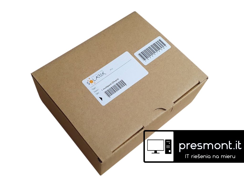V tomto novém multipack balení jsou rychlozařezávací keystony Solarix k dispozici po 24 kusech, a to v recyklovatelném kartónovém boxu a bez plastových sáčků. Tento způsob balení je tedy mnohem šetrnější k životnímu prostředí (tj. místo v plastových obalech je 24 keystonů zabaleno v jednom recyklovatelném papírovém boxu) a rovněž toto balení umožní rychlejší dostupnost keystonů při instalaci (tj. není potřeba keystony vybalovat každý zvlášť). Keystony produktové řady Solarix – kategorie 6 s označením SXKJ-6-STP-BK-NA jsou keystony, u kterých je důraz kladen především na rychlost a jednoduchost zařezání. Tyto keystony lze zařezat speciálními kleštěmi, které významně zkracují čas instalace. Keystony jsou dostupné ve stíněném i nestíněném provedení a bez problémů splňují požadavky definované v mezinárodních standardech ANSI/TIA 568, ISO/IEC 11801 a EN 50173 pro kategorii 6 a třídu vedení Class E, včetně všech nejnovějších dodatků. Standardní barva nestíněných keystonů je černá, u stíněné verze je tělo modulu opatřeno stříbrnou kovovou částí. Kleště s označením SXKJ-NA-BU je nutné dokoupit zvlášť a lze je použít pouze na tento typ keystonů (tj. SXKJ-xx-yyy-BK-NA). Stejně jako všechny komponenty v produktové skupině Solarix – kategorie 6 jsou i tyto rychlozařezávací keystony vyrobeny tak, aby poskytovaly maximální životnost, vynikající výkon, spolehlivost a především jednoduchou instalaci. Díky svým kompaktním rozměrům jsou tyto rychlozařezávací keystony kompatibilní s modulárními zásuvkami většiny výrobců (např. ABB, Schneider, Legrand, Moeller, Hager, Obzor atd.). Tuto kompatibilitu si můžete ověřit v naší tabulce kompatibility keystonů Solarix. Technické parametry Kategorie: CAT6 Podporované protokoly: 2.5G/5GBASE-T a nižší Stínění: ano Min. životnost portu: 1 000 zapojení/odpojení Krytí kontaktů: 50 µ zlata a 100 µ niklu Svorkovnice: rychlozařezávací Velikost a typ vodiče: AWG 26 - 22, drát Materiál nekovových částí: FR plast podle UL94-0 Barva: černá (vnitřní část), stříbrná (kovové tělo) Skladovací teplota: -40 až 70 °C Provozní teplota: -10 až 60 °C Max. provozní vlhkost: 93 % Balení: 24 ks, kartónový box Rozměry balení (výška x šířka x hloubka): 60 mm x 148 mm x 120 mm Přepravní balení: 576 ks (tj. 24 balení po 24 ks) Rozměry přepravního balení (výška x šířka x hloubka): 270 mm x 370 mm x 320 mmDodatočné parametre