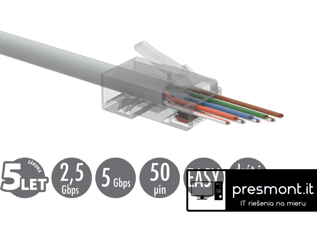 Univerzálny EASY konektor RJ45 CAT6 UTP 8p8c na drôt aj licnu SXRJ45-6-UTP-EASY 100ks