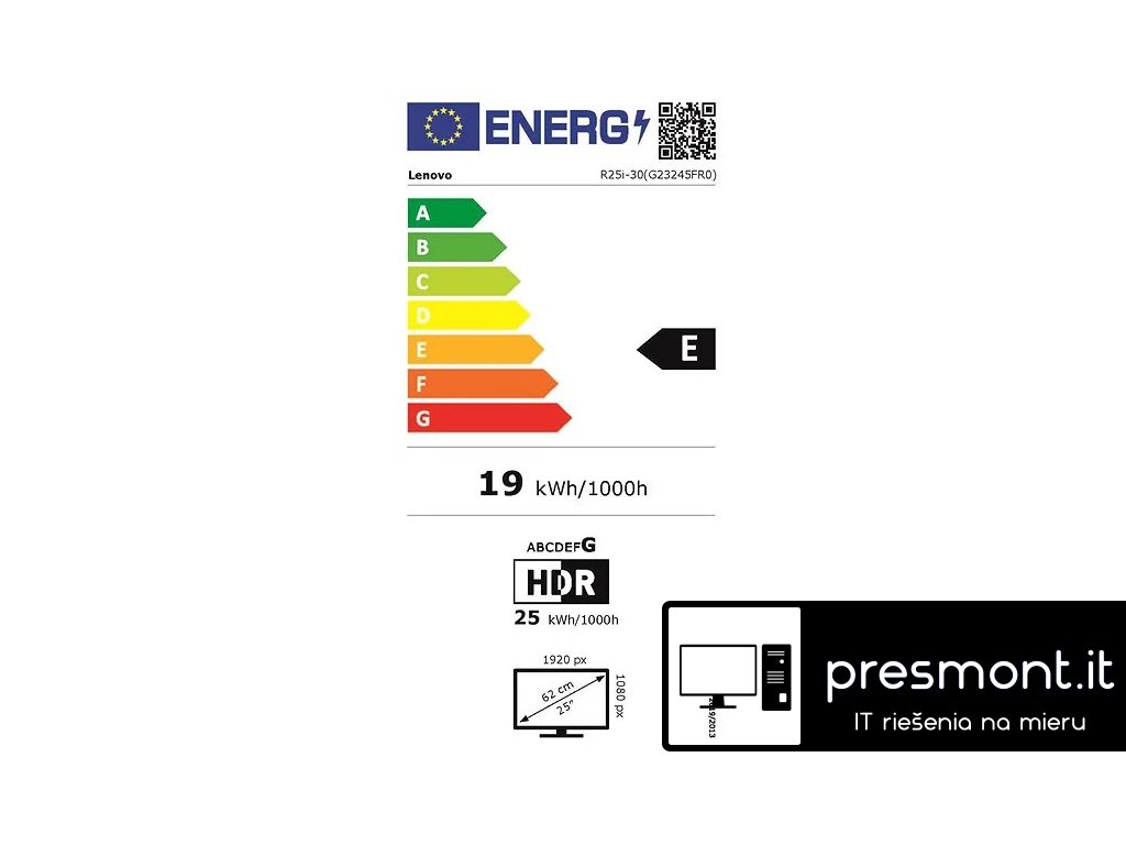 Lenovo Legion R25i-30 *AMD FreeSync™ Premium *DisplayHDR™ 400 *Natural Low Blue Light Typ obrazovky: In-Plane Switching Podsvícení: WLED Úhlopříčka [palce]: 24.5'' Rozlišení: 1920 x 1080 Rozteč bodu [mm]: 0.283 × 0.280 mm Obnovovací frekvence [Hz]: 165 Hz (Overclock to 180Hz) Poměr stran: 16:9 Povrch displeje: Anti-glare Jas [cd/m2]: 400 Kontrast: 1000:1 Odezva [ms]: 0.5ms (MPRT) / 1ms (Level 5) / 2ms (Level 4) / 3ms (Level 3) / 4ms (Level 2) / 5ms (Level 1) Pozorovací úhly (Horizontál/Vertikál): 178° / 178° Počet barev: 16.7 Million Reproduktory: 3W x 2 Konektory: 2x HDMI® 2.1, 1x DP 1.4 Napájení: Integrated Spotřeba [W]: 18.5 W Montáž na zeď: Supports VESA mount 100 mm Naklápění monitoru: Tilt, Swivel, Pivot, Height Adjust Stand Barva: Raven Black Rozměry (se stojanem, ŠxVxH mm): 557.3 x 499.2 x 258.8 mm Hmotnost [kg]: 4.9 kg Záruka: 36 měs. https://psref.lenovo.com/Detail/Lenovo_Monitors/Lenovo_Legion_R25i_30?M=67B7GACBEUDodatočné parametre