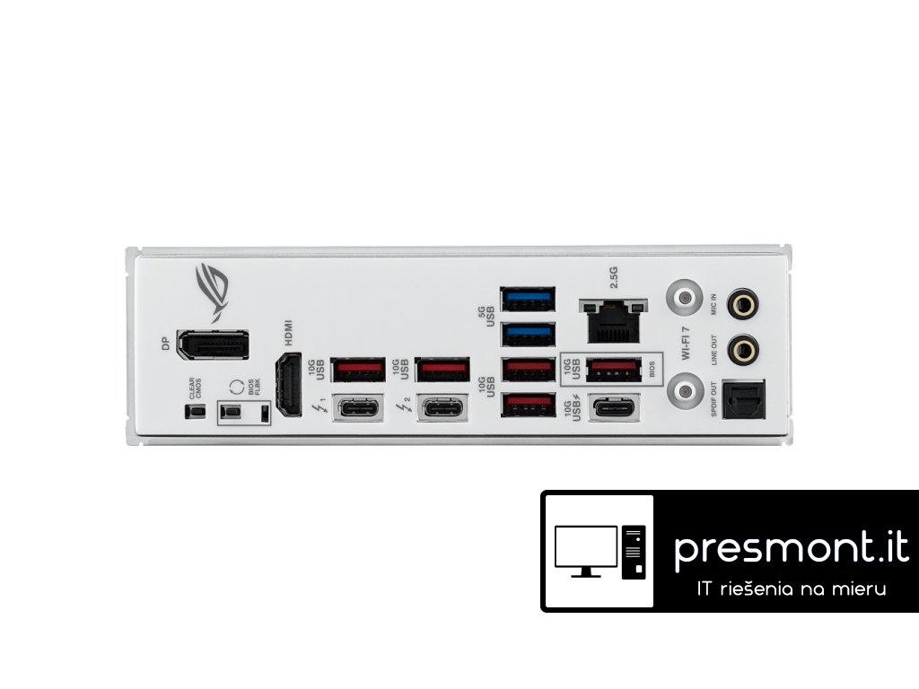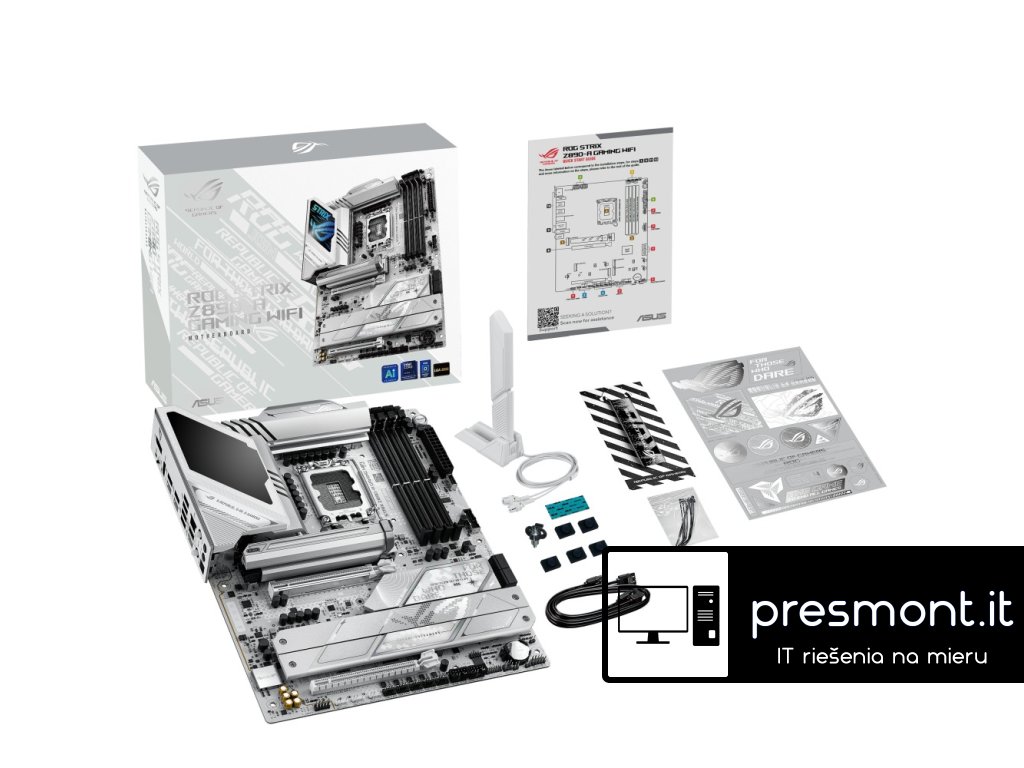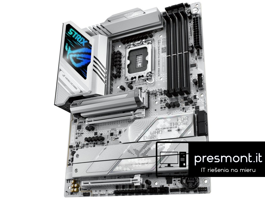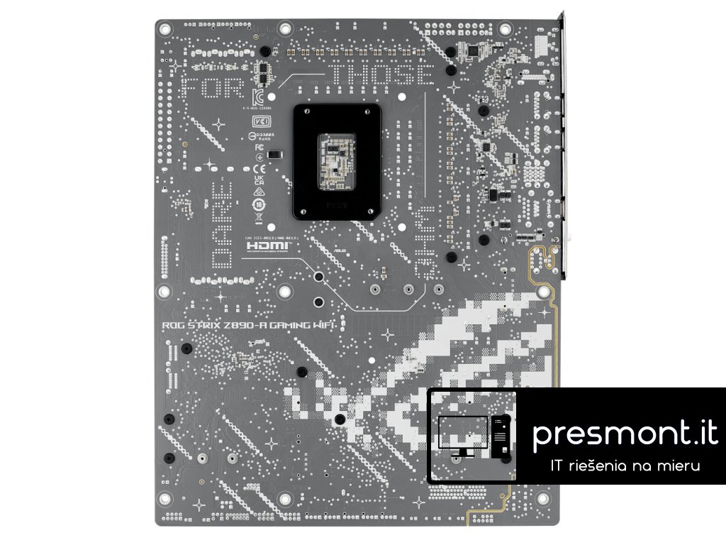 ASUS ROG STRIX Z890-A GAMING WIFI * Aura Sync * EZ PC DIY * BIOS Q-Dashboard * AI Networking II * AI Cooling II * AI Overclocking * AI Advisor Chipset: Intel® Z890 Rozměrový formát: ATX (305x244mm) Podpora pro procesory: Intel® Core™ Ultra (řada 2) Patice procesoru: LGA1851 Paměť: * 4x DIMM, max. 192GB, DDR5 9066+MT/s (OC), bez ECC, bez vyrovnávací paměti DIMM (CUDIMM) * dvoukanálová architektura paměti * podporuje Intel® Extreme Memory Profile (XMP) * DIMM Flex * DIMM FIT * ASUS Enhanced Memory Profile III (AEMP III) Grafické výstupy: specifikace grafiky se mohou u různých typů procesorů lišit * 1x DisplayPort 1.4 * 1x HDMI 2.1 * 2x Intel® Thunderbolt™ 4 (USB typ C®) podporuje video výstupy DisplayPort a Thunderbolt™ Zvuková karta: ROG SupremeFX 7.1 Surround Sound High Definition Audio CODEC ALC4080 - podporuje přehrávání až 32bit/384 kHz na předním panelu, Savitech SV3H712 AMP Ethernet: 1x Intel® 2,5GbE WLAN + Bluetooth: Wi-Fi 7 2x2 (802.11be) + Bluetooth® v5.4 Rozšiřující sloty: * 1x PCIe 5.0 x16 * 1x PCIe 4.0 x16 (podpora režimu x4) RAID řadič: Intel® Rapid Storage podporuje PCIe RAID 0/1/5/10, SATA RAID 0/1/5/10, slot M.2 z CPU podporuje pouze RAID 0/1/5 Úložný prostor: celkem podporuje 5 slotů M.2 a 4 porty SATA 6Gb/s * M.2_1 (Key M), typ 2242/2260/2280/22110 (podpora PCIe 5.0 x4) * M.2_2 (Key M), typ 2280 (podpoa PCIe 4.0 x4) * M.2_3 (Key M), typ 2280 (podpora PCIe 4.0 x4) * M.2_4 (Key M), typ 2280/22110 (podpora PCIe 4.0 x4) * M.2_5 (Key M), typ 2242/2260/2280 (podpora PCIe 4.0 x4 a SATA) * 4x SATA 6Gb/s USB: Zadní USB (celkem 10 portů) * 2x Thunderbolt™ 4 (2x USB typ C®) * 6x USB 10Gb/s (5x typ A + 1x USB typ C® s až 30W PD/PPS rychlonabíjení) * 2x USB 5Gb/s (2x typ A) Přední USB (celkem 7 portů) * 1x USB 20Gb/s (podpora USB typ C®) * 1x USB 5Gb/s header podpora 2 dalších portů USB 5Gb/s * 2x USB 2.0 header podpora 4 dalších portů USB 2.0 Porty na zadním panelu: * 2x Thunderbolt™ 4 (2x USB typ C®) * 6x USB 10Gb/s (5x typ A + 1x USB typ C® s až 30W PD/PPS rychlonabíjení) * 2x USB 5Gb/s (2x typ A) * 1x DisplayPort * 1x HDMI® * 1x modul Wi-Fi * 1x RJ-45 Intel® 2,5Gb * 2x audio konektor * 1x optický výstup S/PDIF * 1x tlačítko BIOS FlashBack™ * 1x tlačítko Clear CMOS Interní porty: Související s ventilátorem a chlazením * 1x 4pin CPU Fan header * 1x 4pin CPU OPT Fan header * 1x 4pin AIO Pump header * 5x 4pin Chassis Fan header Napájení * 1x 24pin hlavní napájecí konektor * 2x 8pin +12V CPU napájecí konektor Související s úložištěm * 5x slot M.2 (key M) * 4x port SATA 6Gb/s USB * 1x USB 20Gb/s konektor (podpora USB typ C®) * 1x USB 5Gb/s header podpora 2 dalších portů USB 5Gb/s * 2x USB 2.0 header podpora 4 dalších portů USB 2.0 Ostatní * 3x Addressable Gen 2 header * 1x Chassis Intrusion header * 1x CPU Over voltage jumper * 1x Front Panel Audio header (F_AUDIO) * 1x tlačítko Start * 1x 10-1pin System Panel header * 1x Thermal Sensor header * 1x Thunderbolt™ (USB4®) header BIOS: 256Mb Flash ROM, UEFI AMI BIOS Příslušenství Kabely: * 2x SATA 6Gb/s kabel Přídavná chladicí sada: * 1x tepelná podložka pro M.2 22110 Různé: * 1x ASUS WiFi Q-anténa * 1x balení stahovacích pásek * 1x balení M.2 Q-Latch * 1x ROG klíčenka * 1x samolepky ROG Strix * 5x M.2 podložka * 1x průvodce instalací Odkaz na stránky výrobce: https://rog.asus.com/motherboards/rog-strix/rog-strix-z890-a-gaming-wifi/Dodatočné parametre