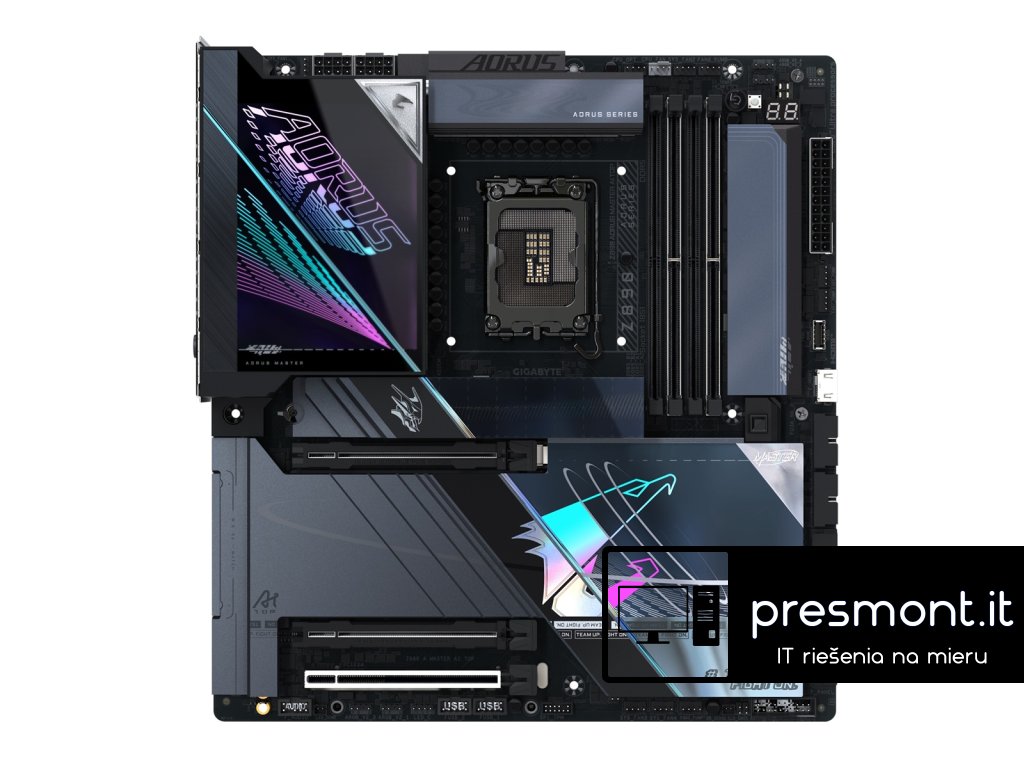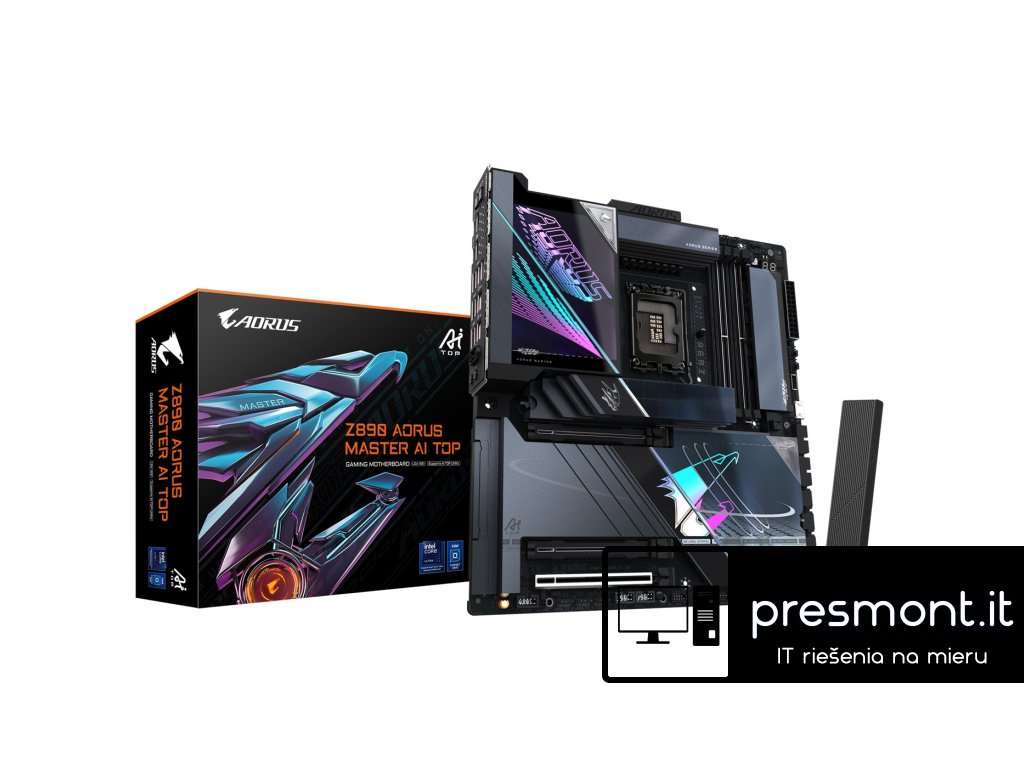 GIGABYTE ,Z890 AORUS MASTER AI TOP Chipset: ,Intel® Z890 Express Rozměrový formát: ,E-ATX (305x285 mm) Podpora pro procesory: ,Intel® Core™ Ultra Patice procesoru: LGA1851 , Paměť: , *4x DIMM patice podporující až 256GB, DDR5 ,9500(OC) / 9466(OC) / 9333(OC) / 9200(OC) / 9066(OC) / 8933(OC) /8800(OC) /8600(OC) / 8400(OC) /8266(OC) / 8200(OC) / 8000(OC) / 7950(OC) / 7900(OC) / 7800(OC) / 7600(OC) / 7400(OC) / 7200(OC) / 7000(OC) / 6800(OC) / 6600(OC) / 6400 / 6200 / 6000 / 5800 / 5600 ,MT/s ,paměťové moduly *Dvoukanálová architektura paměti *Podpora paměťových modulů Extreme Memory Profile (XMP) *Podpora paměťových modulů CUDIMM Grafické porty: , *1x ,Intel® Thunderbolt™ 4 ,(porty USB4® USB Type-C®) ,s maximálním rozlišením 5120x2880 při 60 Hz *1x Přední ,HDMI s maximálním rozlišením 1920x1080 při 30 Hz - Podpora pro ,HDMI verzi 1.4 Zvuková karta: , *Čip ,ESS ES9280 ,(zvuk na zadním panelu) *Podpora pro DTS:X® Ultra *High Definition Audio *2kanálový *čip ESS ES9118 DAC ,(zvuk na předním panelu) Ethernet: ,2x čip ,Marvell® AQtion AQC113C 10GbE LAN WLAN + Bluetooth: ,Intel® Wi-Fi 7 BE200NGW (802.11a, b, g, n, ac, ax, be), ,podpora frekvenčních pásem 2,4/5/6 GHz + Bluetooth 5.4 Rozšiřující sloty: , *1x PCI Express x16 podporuje PCIe 5.0 a běží na x16 ,(PCIEX16) *1x PCI Express x16 podporuje PCIe 5.0 a běží na x8 (PCIEX8) *1x PCI Express x16 podporuje PCIe 4.0 a běží na x4 (PCIEX4) RAID řadič: ,RAID 0, RAID 1, RAID 5 a RAID 10 ,pro úložná zařízení NVMe SSD a ,pro úložná zařízení SATA Úložný prostor: , *1x M.2, M key typ ,25110/22110/2580/2280 ,- podpora PCIe 5.0 x4/x2 SSD (M2A_CPU) *1x M.2, M key typ ,22110/2280 ,- podpora PCIe 4.0 x4/x2 SSD (M2B_CPU) *1x M.2, M key typ ,22110/2280 ,- podpora PCIe 4.0 x4/x2 SSD (M2Q_SB) *1x M.2, M key typ ,22110/2280 ,- podpora SATA a PCIe 4.0 x4/x2 SSD (M2M_SB) *4x SATA 6Gb/s , USB: , Zadní USB *2x Intel® Thunderbolt™ 4 (USB Type-C®) *10x USB 3.2 Gen 2 Type-A (červený) Přední USB *1x USB ,Type-C® header s podporou USB 3.2 Gen 2x2 *2x USB 3.2 Gen 1 header - podpora dalších 2 USB 3.2 Gen 1 *2x USB 2.0/1.1 header - podpora dalších 2 USB 2.0/1.1 Interní porty: , Napájení *1x ,24pinový hlavní napájecí konektor ATX *2x ,8pinové napájecí konektory ATX 12V Související s ventilátorem a chlazením *1x ,CPU fan header *1x ,CPU fan/water cooling pump header *4x ,system fan header *4x ,system fan/water cooling pump header Související s úložištěm *4x M.2 slot (M key) *4x SATA 6Gb/s port USB *1x USB ,Type-C® header *2x USB 3.2 Gen 1 header *2x USB 2.0/1.1 header Ostatní *4x adresovatelný RGB Gen2 LED strip header *1x ,RGB LED strip header *1x ,front panel header *1x ,front panel audio header *1x ,noise detection header *1x Trusted Platform Module header (pouze pro modul ,GC-TPM2.0 SPI V2) *1x HDMI port *1x ,power button *1x ,reset button *1x ,reset jumper *1x ,Clear CMOS jumper *1x temperature sensor header Porty na zadním panelu: , *1x ,Q-Flash Plus button *1x ,Clear CMOS button *2x ,Intel® Thunderbolt™ 4 (USB Type-C®) *10x ,USB 3.2 Gen 2 Type-A (červený) *2x ,RJ-45 *2x ,anténní konektor (2T2R) *2x audio jack BIOS: ,1x 256Mb flash, AMI UEFI BIOS, PnP 1.0a, DMI 2.7, WfM 2.0, SM BIOS 2.7, ACPI 5.0 Odkaz na stránku výrobce: ,https://www.gigabyte.com/Motherboard/Z890-AORUS-MASTER-AI-TOPDodatočné parametre