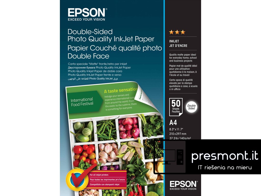 Typ papíru: Photo Quality Ink Jet Paper Rozsah papíru: Home - Speciality Media Použití papíru: foto Formát papíru: A4 Velikost papíru: 219 mm x 297 mm Klasifikace papíru: Lepší Hmotnost papíru: 140 g/m2 Balení: Počet listů: 50 Listy Typ balení: Jednotlivé balení Rozměry balení papíru: 220? x 306 x 14 mm (šířka x hloubka x výška) Hrubá hmotnost balení papíru: 0,552 kgDodatočné parametre