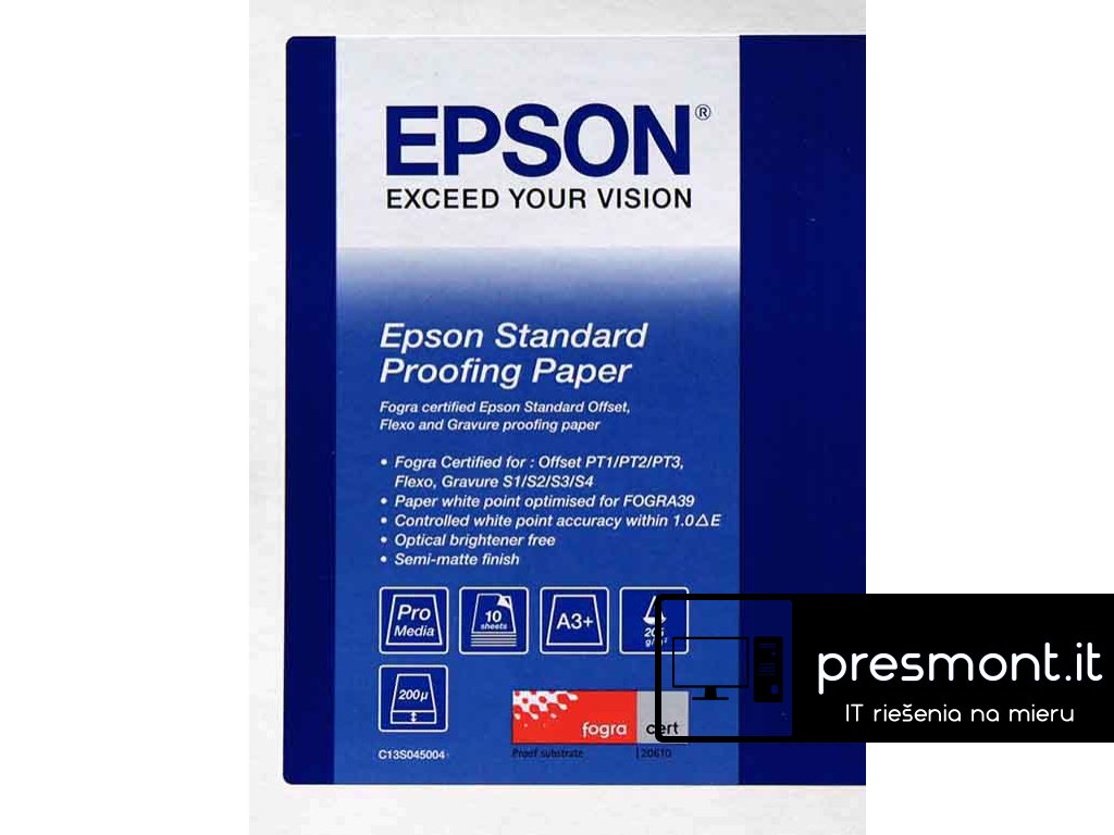 Při použití papírů Epson dosáhnete nepřekonatelných výsledků při tisku doma, v kanceláři i v profesionálním studiu. Vytěžte ze své tiskárny více Standard Proofing Paper je certifikován podle normy Fogra 39, která se má stát normou evropskou. Díky nejširšímu barevnému spektru pro prezicní reprodukci barev, jaké v naší nabídce najdete, přináší tento papír kombinaci základní barvy, hmotnosti a stupně lesku, která se vypořádá s požadavky všech barevně kritických procesů komerčního ofsetového tisku. Toto médium optimalizované pro zkušební nátisk nabízí při použití inkoustu Epson UltraChrome K3 Vivid Magenta vynikající krátkodobou stabilitu. Stejně jako ostatní inovativní média Epson je i tento papír navržen a vyroben tak, aby vám nabídl nejvyšší možné rozlišení a sytost barev. Spotřební materiály Epson jsou vždy zárukou prověřené kvality Epson Přehled - Certifikace FOGRA pro ofset PT1/PT2/PT3, flexo, gravura S1/S2/S3/S4 - Bílý bod papíru 95, 0 -2 optimalizovaný pro FOGRA39 - Řízená přesnost bílého bodu méně než E 1,0 - Bez bělicích látek - 205 g/m, 200 mikronů - Polomatný povrch - Ihned schnoucíDodatočné parametre