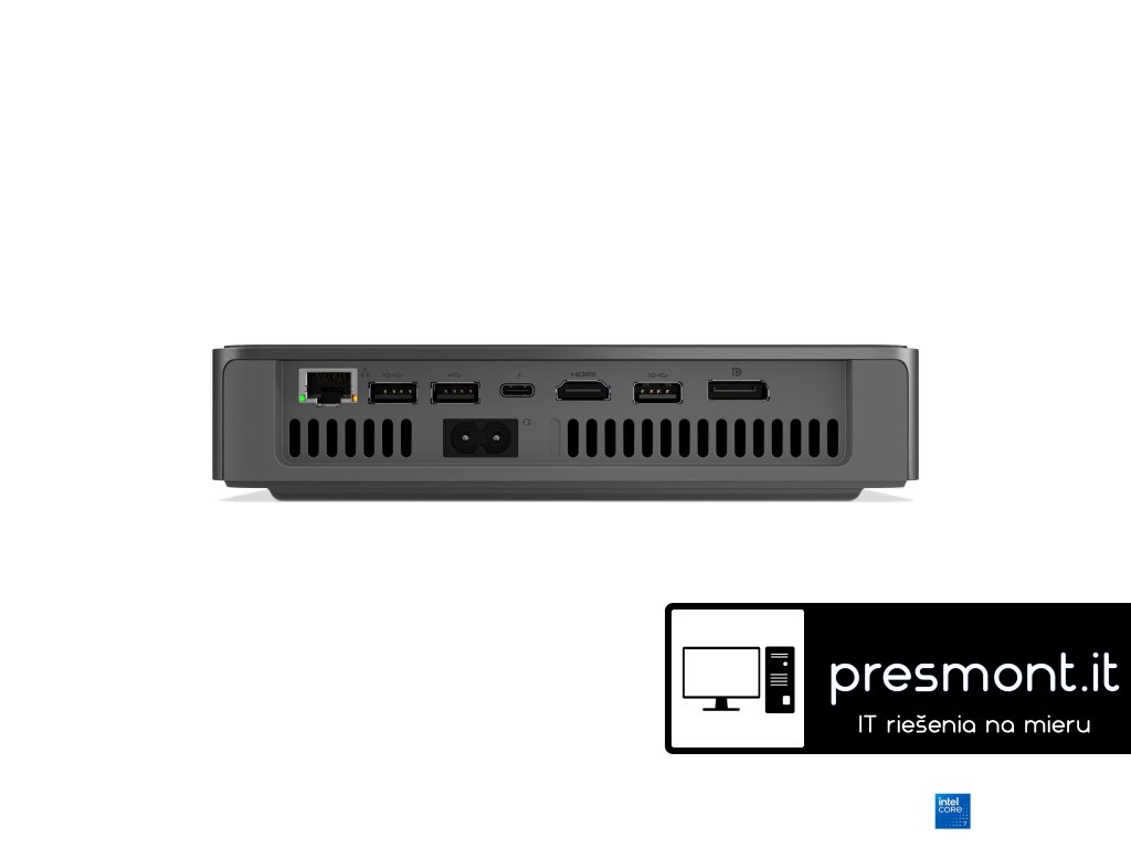 Lenovo IdeaCentre Mini 01IRH10R * 2x ventilátor Provedení: Mini PC/Tiny (1l) Operační systém: ne Procesor: Intel Core 5 210H (8 jader - 4P + 4E, 12 vláken, P-core 2,2/4,8 GHz, E-core 1,6/3,6 GHz, 12 MB cache) Paměť: 1x 16GB SO-DIMM DDR5-5600 Počet slotů (celkem/volných): 2 sloty DDR5 SO-DIMM s podporou dvou kanálů (2/1) Maximální velikost paměti: až 32 GB DDR5-5600 Pevný disk: 512GB SSD M.2 2280 PCIe® 4.0x4 NVMe® Pozice pro interní jednotku: 2x M.2 SSD Optická mechanika: ne Čtečka paměťových karet: ne Grafická karta: Intel UHD Graphics Xe G4 48EU Audio: kodek Realtek® ALC256, HD Síť: 2,5 GbE (RJ-45) Bezdrátová komunikace: WLAN + Bluetooth (Wi-Fi® 7, 802.11be 2x2 + BT5.4) Klávesnice: ne Myš: ne Správa zabezpečení: firmware TPM 2.0 integrovaný v SoC Systém VESA: ne Napájení: 150W 92% Přední porty: * 1x USB-C® (USB 10 Gb/s/USB 3.2 Gen 2) * 1x USB-A (USB 10 Gb/s/USB 3.2 Gen 2), s funkcí Always On * 1x kombinovaný konektor pro sluchátka/mikrofon (3,5 mm) Zadní porty: * 1x USB-C® (Thunderbolt™ 4/USB4® 40 Gb/s), s DisplayPort™ 1.4 * 1x USB-A (USB/USB 2.0) * 2x USB-A (USB 10 Gb/s/USB 3.2 Gen 2) * 1x HDMI® 2.1 TMDS * 1x DisplayPort™ 1.4b * 1x Ethernet (RJ-45) * 1x napájecí konektor Rozšiřující sloty: * 3x M.2 (jeden pro WLAN, dva pro SSD) Barva: Luna Grey Rozměry: 191×195×42,7mm Hmotnost: cca 1,8kg Záruka: 3 roky Odkaz na stránku výrobce: https://psref.lenovo.com/Detail/IdeaCentre_Mini_01IRH10R?M=91B2000RMKDodatočné parametre
