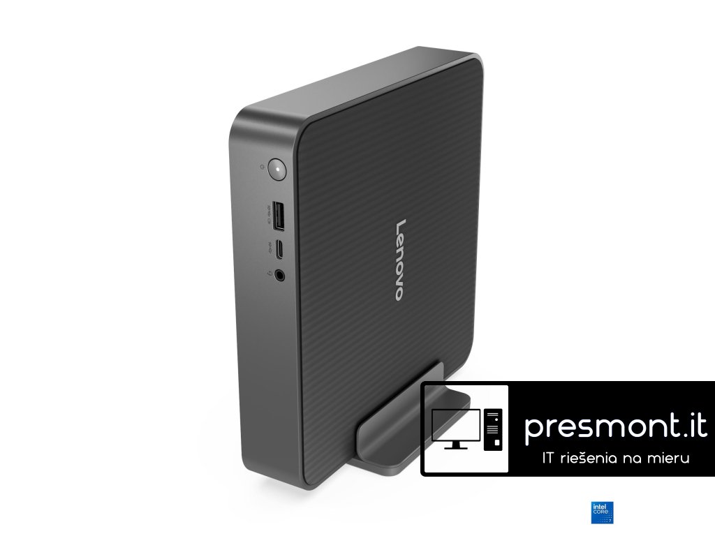 Lenovo IdeaCentre Mini 01IRH10R * 2x ventilátor * Vertikální stojan Provedení: Mini PC/Tiny (1l) Operační systém: Windows 11 Pro, čeština / slovenština / angličtina Procesor: Intel Core 5 210H (8 jader - 4P + 4E, 12 vláken, P-core 2,2/4,8 GHz, E-core 1,6/3,6 GHz, 12 MB cache) Paměť: 1x 16GB SO-DIMM DDR5-5600 Počet slotů (celkem/volných): 2 sloty DDR5 SO-DIMM s podporou dvou kanálů (2/1) Maximální velikost paměti: až 32 GB DDR5-5600 Pevný disk: 512GB SSD M.2 2280 PCIe® 4.0x4 NVMe® Pozice pro interní jednotku: 2x M.2 SSD Optická mechanika: ne Čtečka paměťových karet: ne Grafická karta: Intel UHD Graphics Xe G4 48EU Audio: kodek Realtek® ALC256, HD Síť: 2,5 GbE (RJ-45) Bezdrátová komunikace: WLAN + Bluetooth (Wi-Fi® 7, 802.11be 2x2 + BT5.4) Klávesnice: ne Myš: ne Správa zabezpečení: firmware TPM 2.0 integrovaný v SoC Systém VESA: ne Napájení: 150W 92% Přední porty: * 1x USB-C® (USB 10 Gb/s/USB 3.2 Gen 2) * 1x USB-A (USB 10 Gb/s/USB 3.2 Gen 2), s funkcí vždy zapnuto * 1x kombinovaný konektor pro sluchátka/mikrofon (3,5 mm) Zadní porty: * 1x USB-C® (Thunderbolt™ 4/USB4® 40 Gb/s), s DisplayPort™ 1.4 * 1x USB-A (USB/USB 2.0) * 2x USB-A (USB 10 Gb/s/USB 3.2 Gen 2) * 1x HDMI® 2.1 TMDS * 1x DisplayPort™ 1.4b * 1x Ethernet (RJ-45) * 1x napájecí konektor Rozšiřující sloty: * 3x M.2 (jeden pro WLAN, dva pro SSD) Barva: Luna Grey Rozměry: 191×195×42,7mm Hmotnost: cca 1,8kg Záruka: 2 roky Odkaz na stránku výrobce: https://psref.lenovo.com/Detail/IdeaCentre_Mini_01IRH10R?M=91B2004UMKDodatočné parametre
