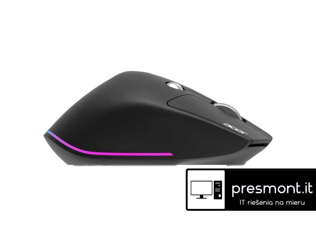 Acer Easy Fit bezdrátová myš * RGB podsvícení * matný povrch * tichá tlačítka * výdrž až 120 hodin Technické parametry Rolovací kolečko: ano Počet tlačítek: 6 Rozhraní/konektivita: rf 2,4 Ghz usb dongle, Bluetooth 5.0, konektor USB-C Dosah: až 10 m Napájení: li-ion baterie, 500mAh Rozlišení senzoru: 1600/2400/3200/4000dpi Snímač pohybu: optický Barva: černá Rozměry: 125x70x42mm Hmotnost: 100gDodatočné parametre