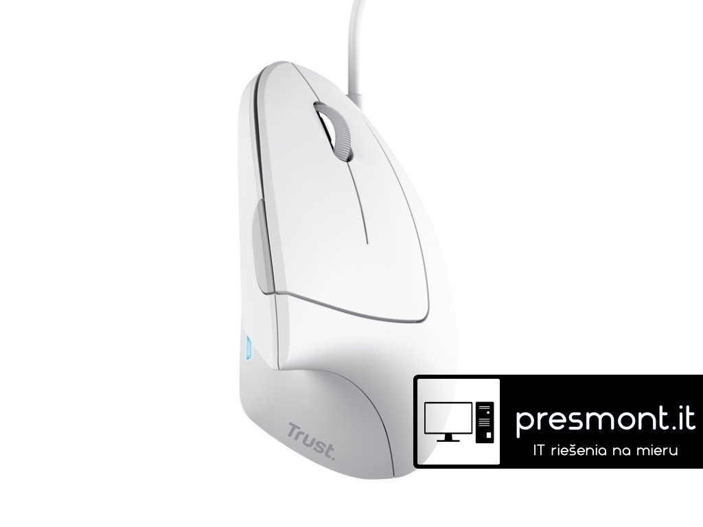 Trust Verto vertikální ergonomická myš myš s ergonomickým vertikálním designem pro snížení namáhání paže a zápěstí Díky ergonomickému designu a pohodlné opěrce na palec můžete pracovat nebo studovat bez námahy po celé hodiny, ať už doma nebo v kanceláři. Díky svislému provedení se vaše lokty a zápěstí dostávají do přirozené polohy, čímž se uvolňují svaly rukou, zápěstí a paží. S pryžovou vrstvou na této myši budete mít pevný úchop i při dlouhodobé práci. * atraktivní modré podsvícení LED Technické parametry Rolovací kolečko: ano Počet tlačítek: 6 Programovatelná tlačítka: ne Rozhraní/konektivita: USB-A 2.0 Napájení: kabel USB, délka 150cm Nastavitelné DPI: ano Rozlišení senzoru: 1000, 1600dpi Snímač pohybu: optický Barva: bílá Rozměry: 120x75x63mm Hmotnost: 148g Doporučené požadavky na systém: - volný port USB-A - Windows, macOS, Chrome OS Záruka: 2 roky Odkaz na stránku výrobce: https://www.trust.com/en/product/25133-verto-ergonomic-mouse-whiteDodatočné parametre