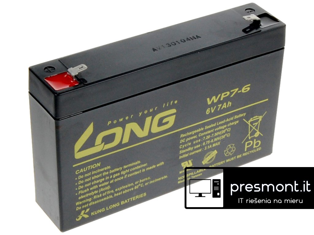 Long 6V 7Ah olovený akumulátor F1