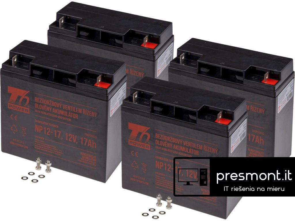 Náhradní akumulátor za RBC11, RBC55 Napětí: 12 V Rozměry: 181x304x167 mm Hmotnost: 20 kg Kapacita: 816VAh Kit obsahuje: 4x baterie 17Ah Životnost: 3-5 let hermeticky uzavřený olověný zdroj energie v provedení VRLA. Akumulátor je možné používat v libovolné pozici Kompatibilní modely: APC Back-UPS 3000, APC Smart-UPS 1400RMXLNET, APC Smart-UPS 1400RMXLTNET, APC Smart-UPS 1400XLTNET, APC Smart-UPS 2200NET, APC Smart-UPS 2200RM, APC Smart-UPS 2200RMNET, APC Smart-UPS 2200RMXL, APC Smart-UPS 2200RMXLNET, APC Smart-UPS 2200RMXLTNET, APC Smart-UPS 2200VA, APC Smart-UPS 2200XL, APC Smart-UPS 2200XLNET, APC Smart-UPS 2200XLT, APC Smart-UPS 2200XLTNET, APC Smart-UPS 3000NET, APC Smart-UPS 3000RM, APC Smart-UPS 3000RMNET, APC Smart-UPS 3000TNET, APC Smart-UPS 48XLBP, APC Smart-UPS 5000VA, APC Smart-UPS DLA2200, APC Smart-UPS DLA2200I, APC Smart-UPS NECA3000JW, APC Smart-UPS SMT2200, APC Smart-UPS SMT2200I, APC Smart-UPS SMT2200US, APC Smart-UPS SMT3000, APC Smart-UPS SMT3000I, APC Smart-UPS SU1400RMXLNET, APC Smart-UPS SU1400RMXLTNET, APC Smart-UPS SU1400XLTNET, APC Smart-UPS SU2000, APC Smart-UPS SU2200, APC Smart-UPS SU2200BX120, APC Smart-UPS SU2200INET, APC Smart-UPS SU2200NET, APC Smart-UPS SU2200RM, APC Smart-UPS SU2200RMNET, APC Smart-UPS SU2200RMXL, APC Smart-UPS SU2200RMXLT, APC Smart-UPS SU2200US, APC Smart-UPS SU2200X106, APC Smart-UPS SU2200X111, APC Smart-UPS SU2200X115, APC Smart-UPS SU2200X179, APC Smart-UPS SU2200X180, APC Smart-UPS SU2200X93, APC Smart-UPS SU2200XL, APC Smart-UPS SU2200XLNET, APC Smart-UPS SU2200XLTNET, APC Smart-UPS SU2200XLTX153, APC Smart-UPS SU24XLBP, APC Smart-UPS SU3000, APC Smart-UPS SU3000INET, APC Smart-UPS SU3000NET, APC Smart-UPS SU3000RM, APC Smart-UPS SU3000RMNET, APC Smart-UPS SU3000RMX93, APC Smart-UPS SU3000TNET, APC Smart-UPS SU3000US, APC Smart-UPS SU3000X177, APC Smart-UPS SU48BP, APC Smart-UPS SU48XLBP, APC Smart-UPS SUA2200, APC Smart-UPS SUA2200I, APC Smart-UPS SUA2200ICH, APC Smart-UPS SUA2200UXI, APC Smart-UPS SUA2200UXICH, APC Smart-UPS SUA2200X115, APC Smart-UPS SUA2200XL, APC Smart-UPS SUA2200XLI, APC Smart-UPS SUA24XLBP, APC Smart-UPS SUA3000, APC Smart-UPS SUA3000I, APC Smart-UPS SUA3000ICH, APC Smart-UPS SUA3000UXI, APC Smart-UPS SUA3000UXICH, APC Smart-UPS SUA3000XL, APC Smart-UPS SUA3000XLI, APC Smart-UPS SUA3000XLT, APC Smart-UPS SUA48XLBP, APC Smart-UPS SUA5000R5TXFMR, APC Smart-UPS SUA5000RMI5U, APC Smart-UPS SUA5000RMT5U, Hewlett Packard T2400H, Hewlett Packard PRA2200I, Dell DLT2200Dodatočné parametre